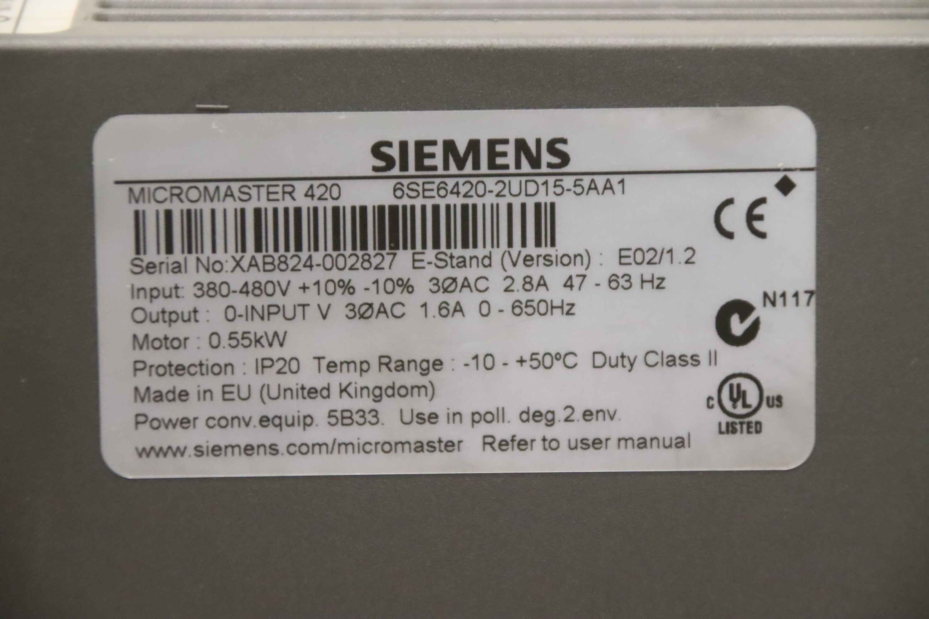 Modelo:Micromaster 420 6SE6420-2UD15-5AA1