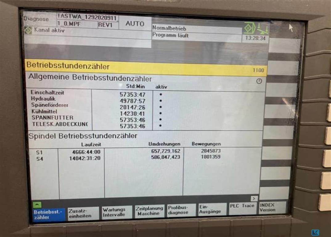 turning diameter:270 mmturning length:710 mmweight of the machine ca.:6,5 tmax. swing diameter:590 mmwith automatic loading and unloading system G300 with "spindle bore clamping capacity 90mm" in tailstock versionChip conveyor, belt filter press, hydraulic unit, as well as infeed and outfeed chain conveyor EWAP, with 33 pallets. The machine has no driven tools. The information in the circuit diagram refers to the rotary drive for indexing the turret, not to driven tools.