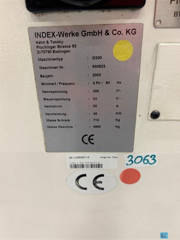 turning diameter:270 -300 mmturning length:710 mmtotal power requirement:43 kWweight of the machine ca.:8,5 tdimensions of the machine ca.:3,16 x 2,15 x 2,15 mThe machine does not include a chuck or tools ? the machine was originally purchased without these accessories. The G300 has X, Z, Y, C, SP, and driven tools. A bar feeder can be used, but the machine does not have one.