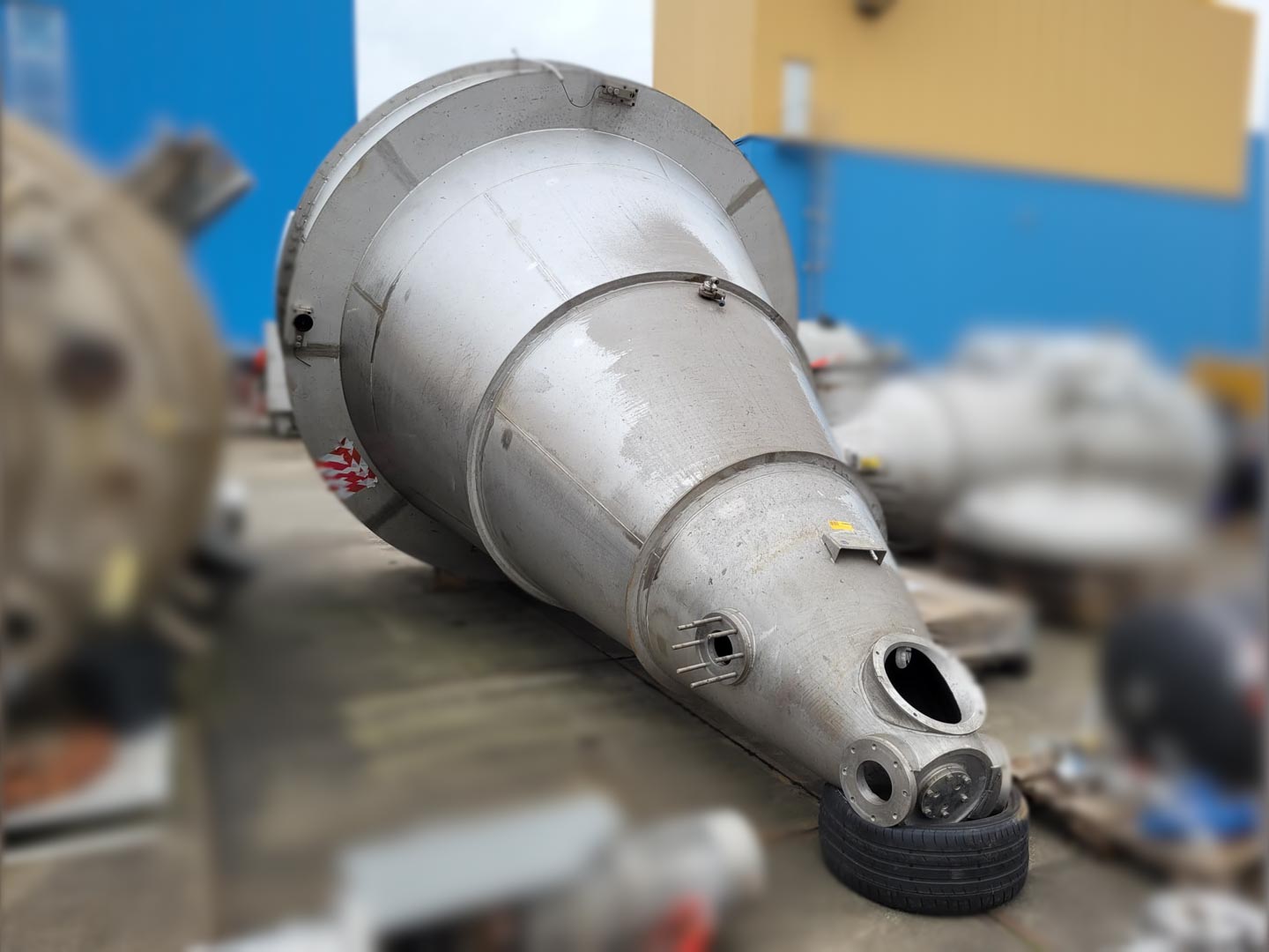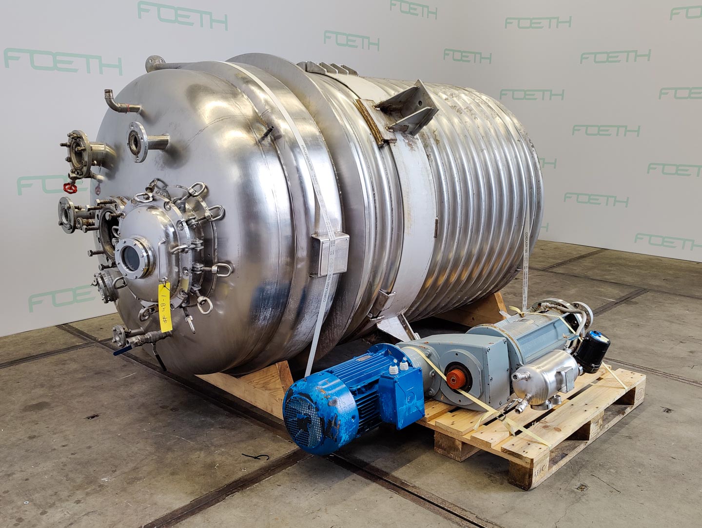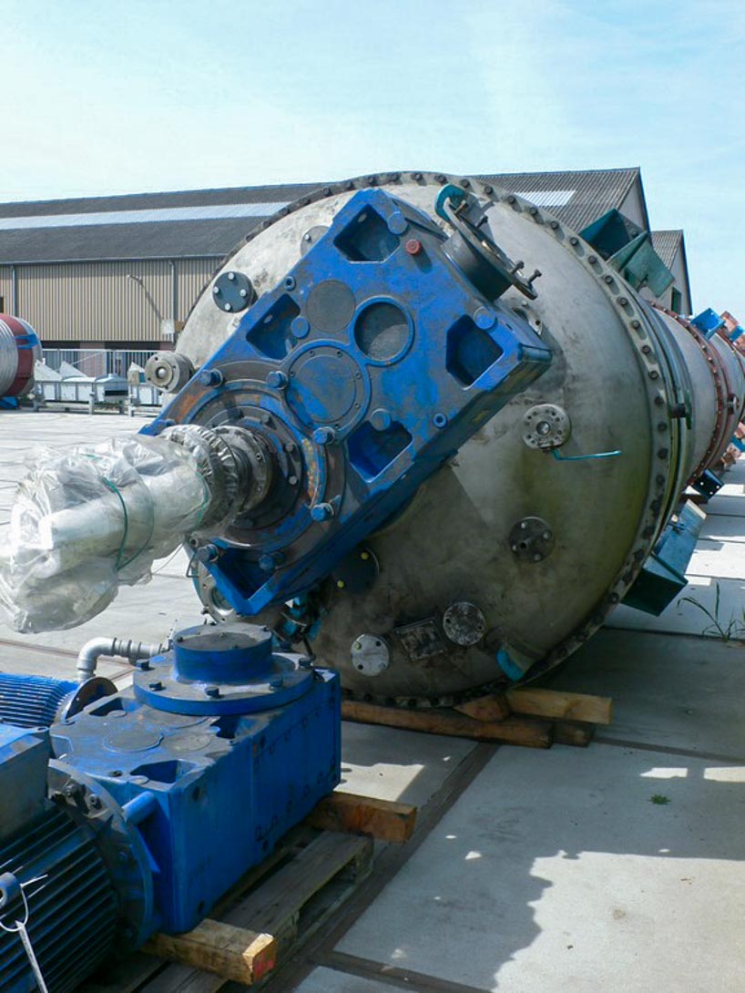 General SKU071E319 MakeAlpha AG Nidau No.10.148 Year of construction1971, Motor/drive unit from 2009 LocationBarneveld Pressure Working pressure3.2 Bar Vacuum possiblecheck Working pressure jacket16 Bar Main Features MaterialStainless steel Volume10000 Ltr. Motor30 KW Specified Features - Stainless Steel Reactor Reactorcheck Capacity13.670 Ltr. , (netto 10.000 Ltr.) Vessel sizesDia. 2400 x 2200 mm Dished bottomcheck Dished top sidecheck ManholeDia. 600 mm Top connections4x dia. 300 mm + 4x dia. 200 mm Outletdia. 70 mm (jacketed outlet valve) With jacketcheck Half coil jacketed(380 Ltr) Max. temperature200°C With anchor stirrercheck Motor30 kW, (400/690 V, 1473 rpm, Ex) Speed mixing shaft27 rpm Stainless Steel Reactors MaterialStainless steel 1.4435 (316L) Information Floorspace2,6 x 2,6 m Total height7,1 m Weight6000 kgCatalysts & fillersStainless Stee ...