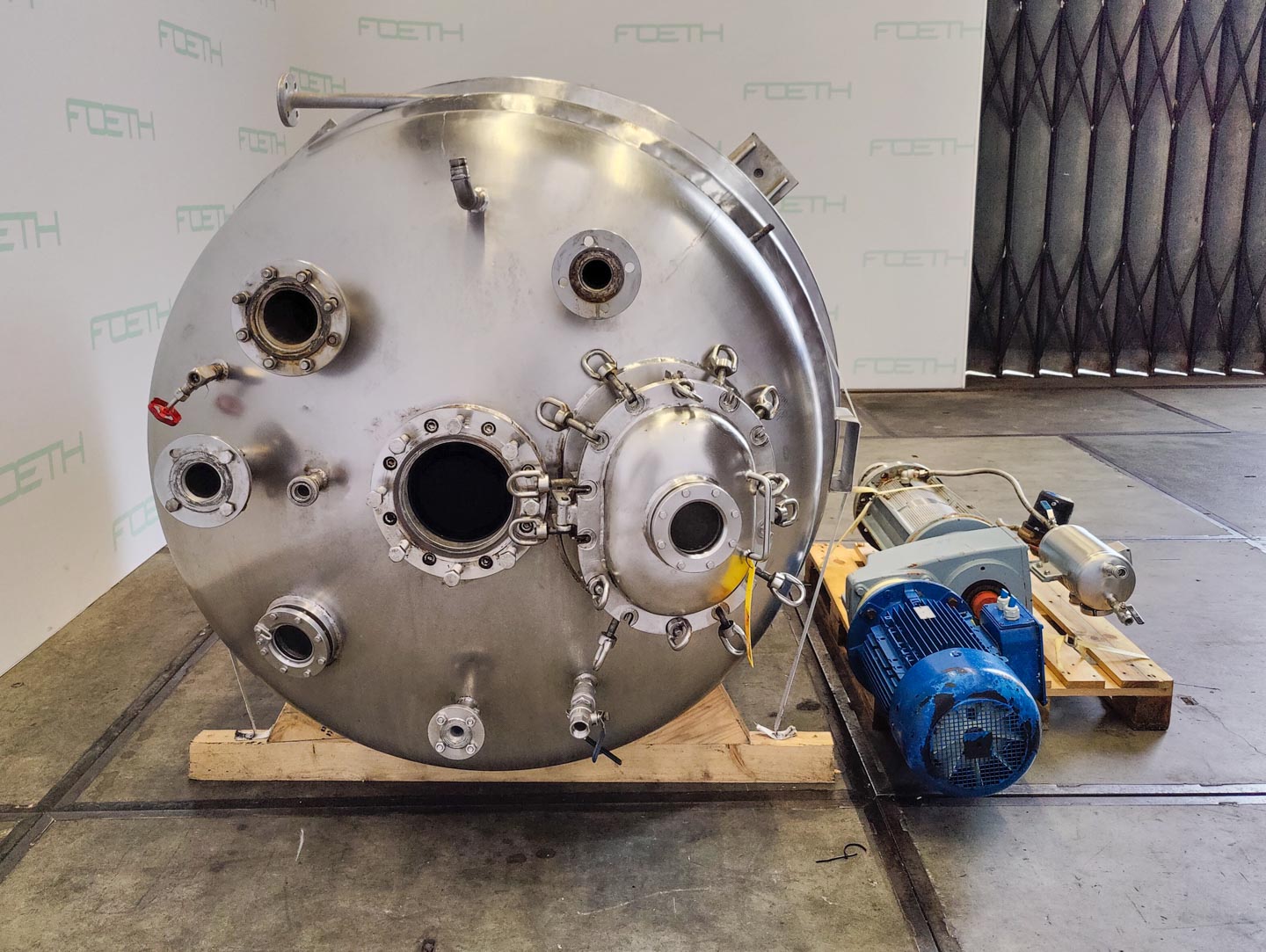 General SKU404U1227 MakeLudwig Edel LocationBarneveld Pressure Working pressure2 Bar Vacuum possiblecheck Working pressure jacket6 Bar Main Features MaterialStainless steel Volume5400 Ltr. Motor3 KW Vacuumcheck Specified Features - Stainless Steel Reactor MaterialStainless steel 1.4571 (316Ti) Stainless Steel Reactors ReactorBioreactor Capacity5400 Ltr. (max. 7350 Ltr.) Vessel sizesdia. 1800x3250 mm Dished bottomcheck Dished top sidecheck ManholeDN450 Top connectionsDN100 OutletDN50 With jacketcheck (73 Ltr.) Half coil jacketedcheck With paddle stirrercheck(double) Motor3 kW, 380/660Volt, 1400/90rpm Speed mixing shaft90 rpm Information No.85 239/1 Year of construction1986 Floorspace2x2 m Total height3,25 m Weight1600 kgCatalysts & fillersPaper & otherStainless Steel ReactorsSolventsDetergent & surf.Other pharmaceuticsCosmeticsOrganicsE-waste & metalLubr ...