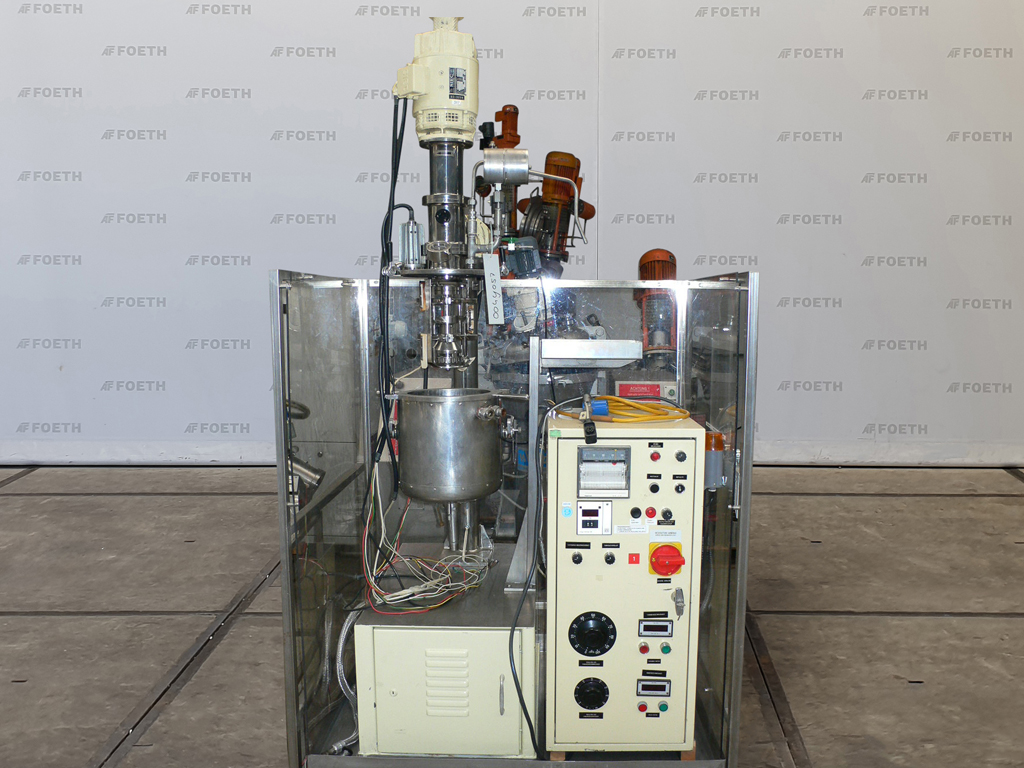 General SKU004Y057 MakePressindustria S.p.A. TypeTE.3/SV/R/5 No.4302 Year of construction1983 LocationBarneveld Pressure Working pressure0.067 Bar Vacuum possiblecheck Working pressure jacket3 Bar Main Features MaterialStainless steel Volume7 Ltr. Motor0.55 KW Specified Features - Processing vessel MaterialStainless steel 1.4401 (316) Closed stirring vesselVacuum processing vessel (1x) Capacitymin. 3/max. 7 Ltr Vessel sizesdia. 250x250mm, Vessel can be lifted hydr. Dished bottomcheck Flat top sidecheck With covercheck With jacketcheck Max. temperature160 Degr. C. With anchor stirrerscraper stirrer Counter rotating stirrercheck Motor0,07/0,22 KW, 220 Volt (3 Ph) Speed mixing shaft3-60 Rpm With homogeniser(400-2000 Rpm) Motor0,2/0,55 KW Information With switchgearcheck Floorspace1,2x0,9 M Total height2,3 M Technical specs Extra informationVessel can be  ...