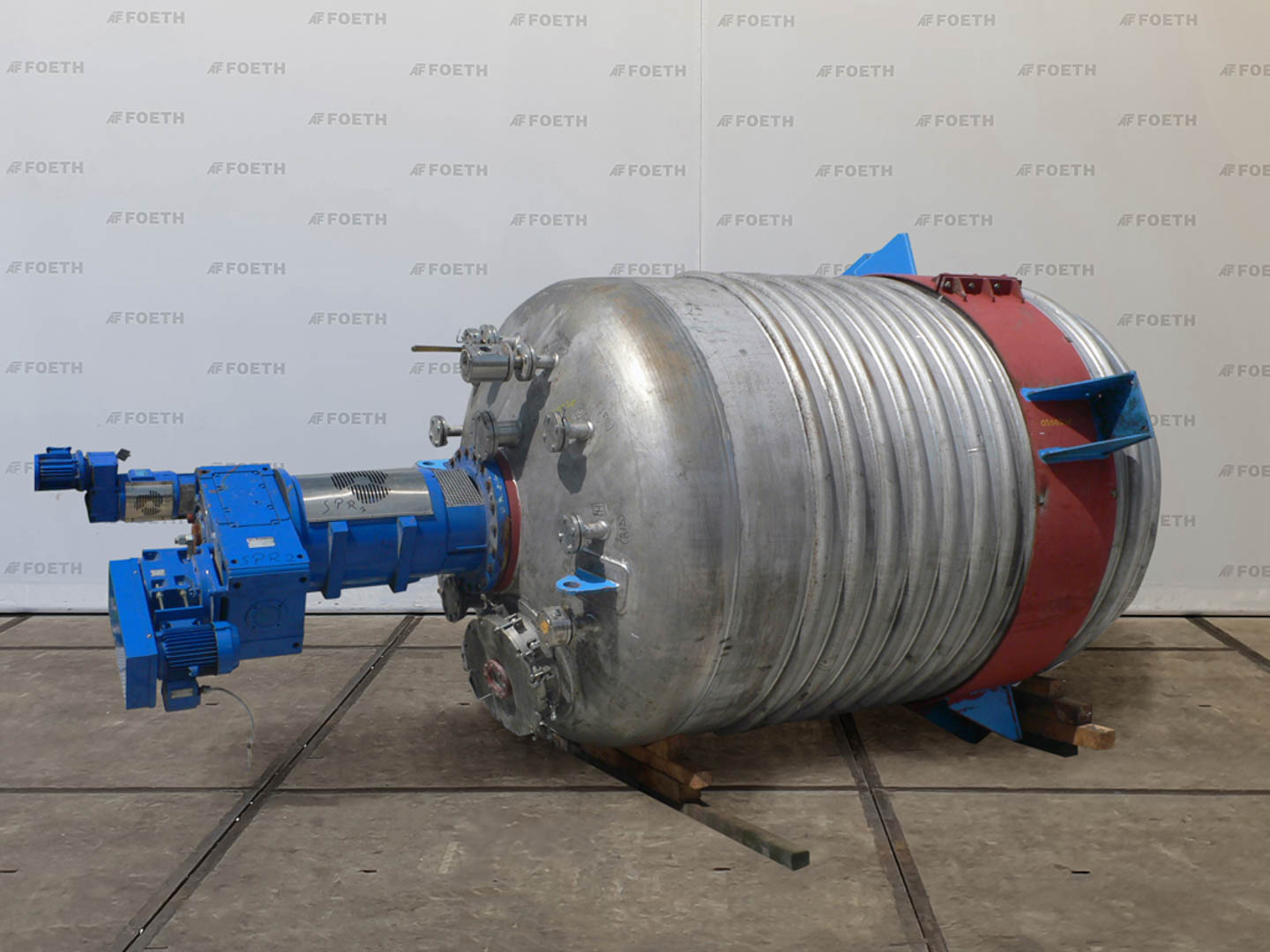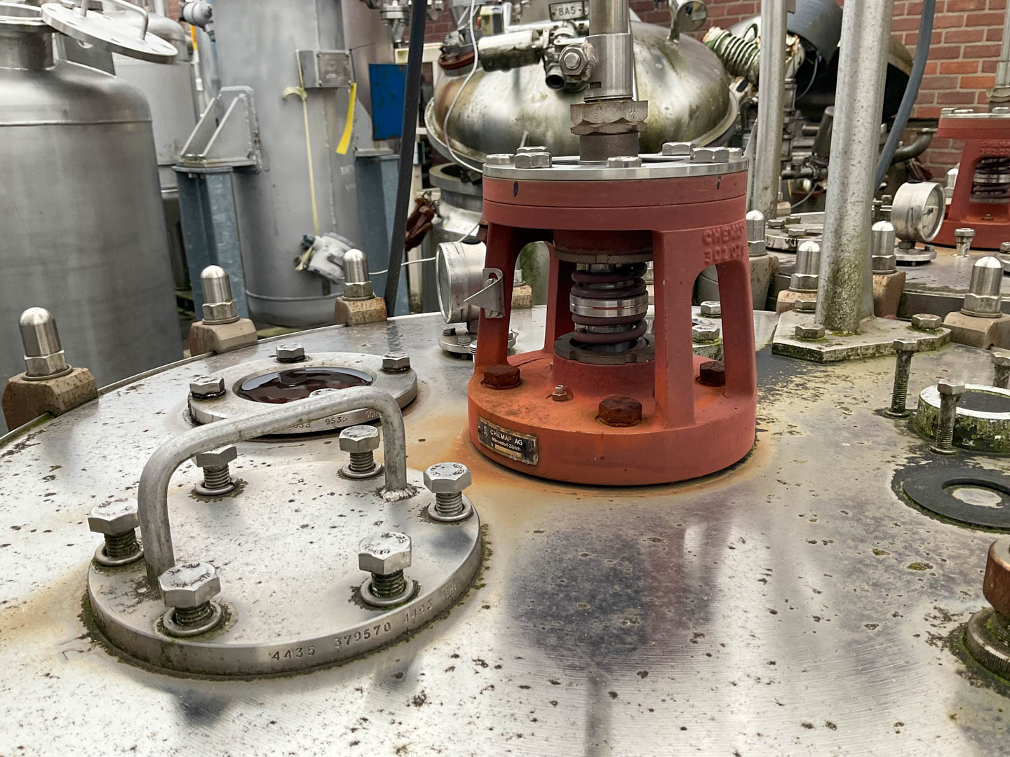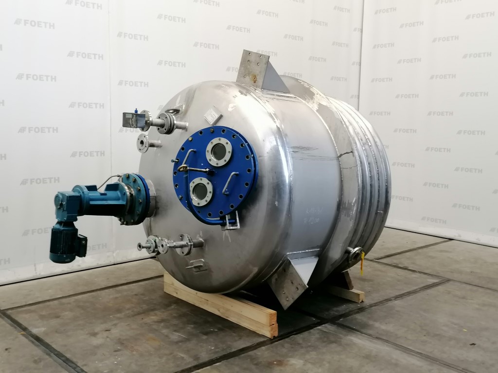General SKUR1205 MakeJeger AG (CH) LocationBarneveld Type4000 Ltr. Pressure Working pressure3.2 Bar Vacuum possiblecheck Working pressure jacket16 Bar Main Features MaterialStainless steel Volume4000 Ltr. Motor2.2 KW Specified Features - Stainless Steel Reactor MaterialStainless steel 1.4571 (316Ti) Stainless Steel Reactors Reactorcheck Capacity4420 (4000 ltr nett) Vessel sizesdia. 1800x2000mm Dished bottomcheck Dished top sidecheck Manholedia. 500mm Top connectionsdia. 50mm (4x) dia. 300mm (1x) Outletdia. 80mm Half coil jacketed(90 Ltr) Max. temperature-30/200 degr. C With propellor stirrercheck Motor2.0 kW 220/380 Volt (Ex) Speed mixing shaft203 rpm. Information No.5653 Year of construction1992 Floorspace2.4x2.4 M Total height3,2 M Weight1600 Kg ATEX compatiblecheckCatalysts & fillersStainless Steel ReactorsSolventsDetergent & surf.Other pharmaceutic ...