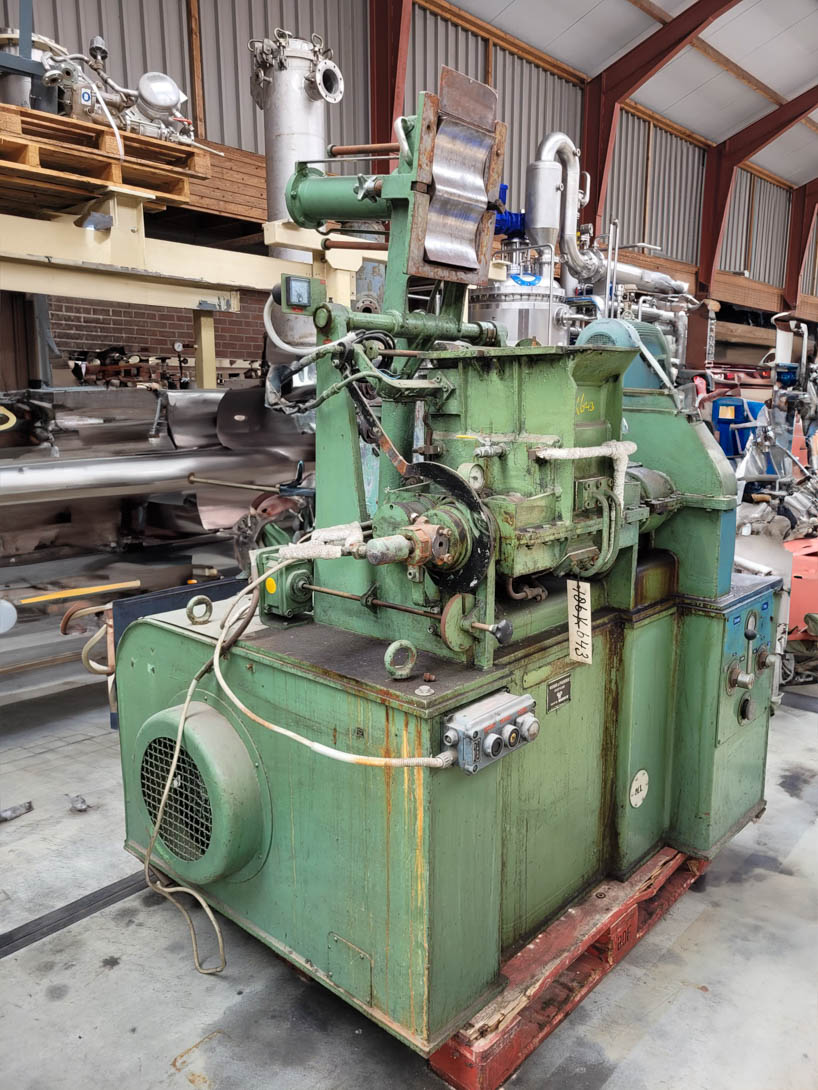 General SKU186K643 MakeWerner und Pfleiderer TypeLDUK 6 - IInS No.111045 Year of construction1962 Mounted on framecheck Pressure Working pressure10 Bar Main Features MaterialMild steel Volume18 Ltr. Motor7.5 KW Specified Features - Z-blade mixer Double screw cont. kneadercheck Jacketcheck With variable speed drivecheck Inlet30 x 195 mm Arm speed21,6-97,2/28,2-127 Rpm Arms can be cooled/heatedcheck Capacity18 l (usefull 8 l) Double shaft kneadercheck dispersion kneader Masticator-armscheck Single gearedcheck With adjustable packing glandscheck With covercheck With hydraulic tiltingcheck Motor7,5 kW (400 V) Z-blade mixers MaterialMild steel Information LocationBarneveld With switchcheck Floorspace1,8 x 1,4 m Total height2 m Weight2500 kg Extra SpecificationsPneumatic tilting. With top ram (pneumatic) Catalysts & fillersDiscountZ-blade mixersDetergent &  ...