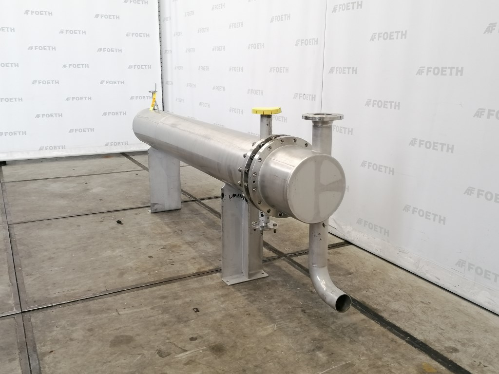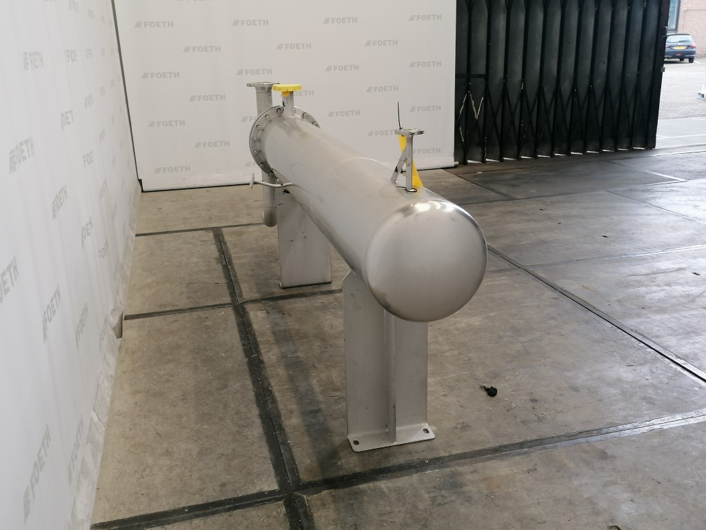 General SKUR0854 LocationBarneveld MakeZürcher AG (CH) Type35 m2 Pressure Working pressure shell6 Bar Working pressure tubes10 Bar Main Features Shell (Material)Stainless steel Tube (Material)Stainless steel Surface35 m2 Specified Features - Shell and tube heat exchanger MaterialStainless steel 1.4404 Heat exchangercheck Horizontalcheck Heating surface35 m2 Tube capacity164 ltr U-typecheck Number of tubes:122 Tube diameter16mm Tube lengthca 5400mm Wall thickness tubes1,0mm Max. temperature-30/200 degr.C Shell capacity206 ltr Shell diameter406mm Shell length3312mm Wall thickness shell4mm Max. temperature-30/200 degr. C Shell connectionsDN65 (2x), DN15 (1x) Cover connectionsDN100 (1x), dia. 100mm (1x) Information No.1886 Year of construction2002 Mounted on legscheck Floorspace3,7x0,6 M Total height1,3 M Weight750 KGCatalysts & fillersFeed additivesPap ...
