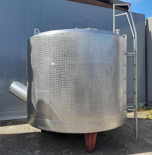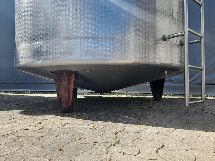 New 25.000 litre tank, Stock number: T25B6-1, Litre: 25.000, Material: Stainless acid proof steel AISI 316, Item: Tank, Standing: 4 pcs. legs, Top: Conical 15°, Bottom: Conical 20°, Tank cover: In the top, Ø 500 mm., Pipes: Top Ø 1½ and Ø 4 - Bottom Ø 2½ , Inner diameter: Ø 2600 mm., Cylinder: H 4500 mm., Total height: H 5627 mm., Plate type: The tank is made of pickled type B2, Inner finish: All weldings grinded grain 60, Outer finish: All weldings sandblasted, Working temperature: 0 - +50° C, Density: 1,0, Working pressure: None, Manufacturer: Handing