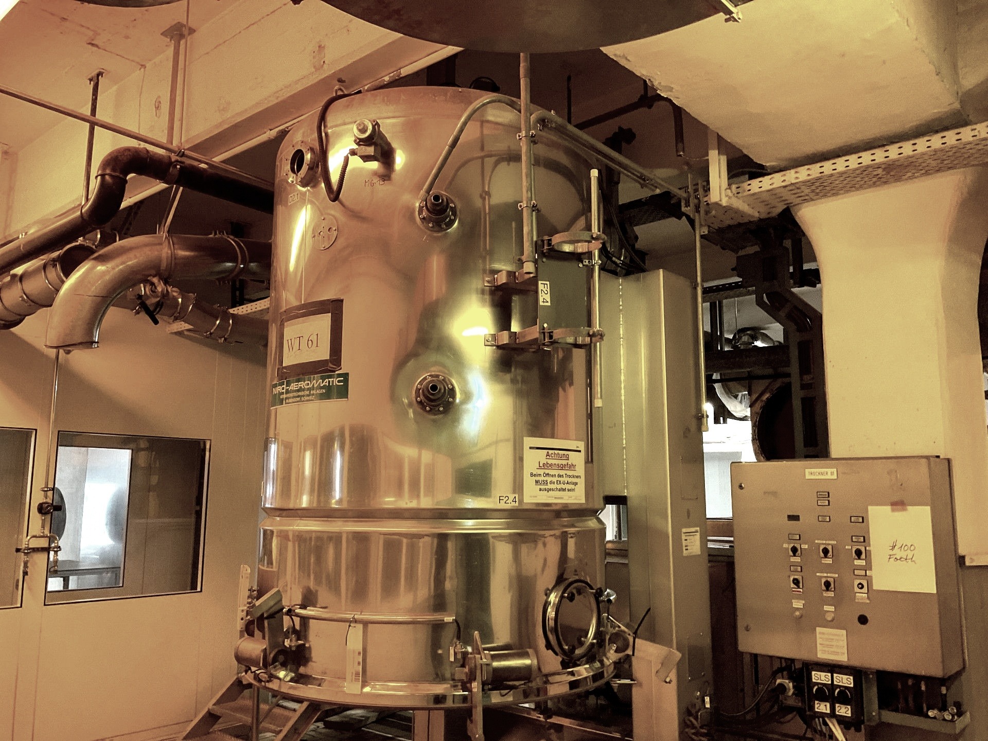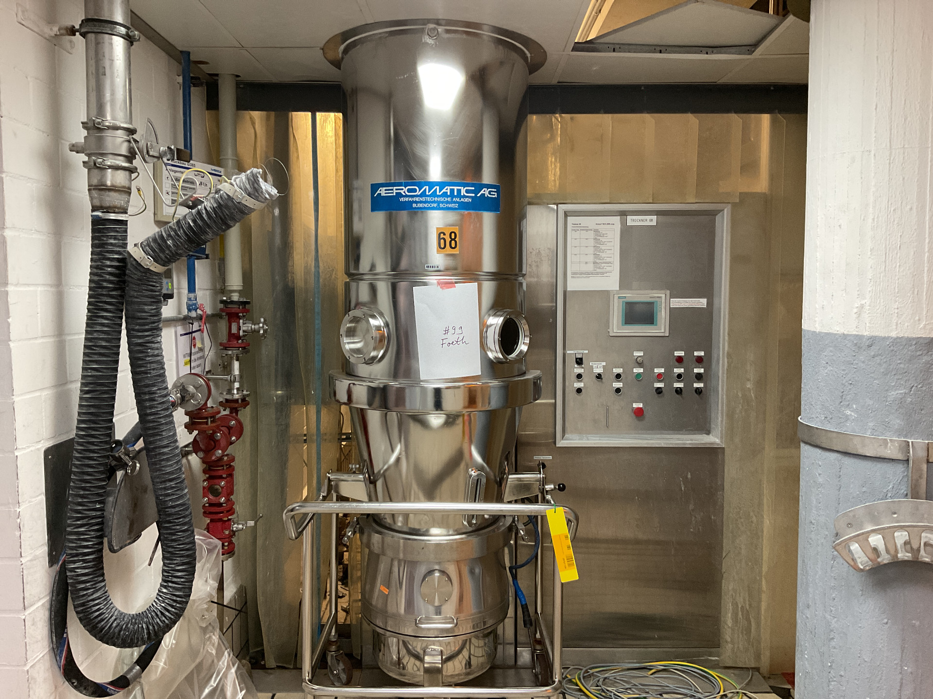 General SKU397X1154 MakeNiro-Aeromatic TypeT3 No.919054 Year of construction1990 LocationBarneveld Main Features MaterialStainless steel Volume123 Ltr. Motor7.5 KW Specified Features - Fluid bed dryer batch Fluidbeddryercheck Granulatorcheck With pancheck With pan mounted on wheelscheck Capacity0,123 m³ Capacity0,186 m² With sprayercheck (CIP) Can be heated by steamcheck With fancheck Capacity0.5 m³/s Motor7,5 kW 380/660 V (EEx E II T3) With dust filtercheck Filter surfaceExhaust filter 3.5 m²: HEPA supply air filter 36 m² MaterialStainless steel 1.4305 (303), Stainless steel 1.4552, Stainless steel 1.4301 (304), Stainless steel 1.4306 (304L) Information With switchgearcheck (as is) Floorspace7,6 x 0,78 m Total height3,5 m Extra Specifications Filter housing – explosion pressure resistance (pressure shock resistance): 10 bar(g) Exhaust air filter  ...
