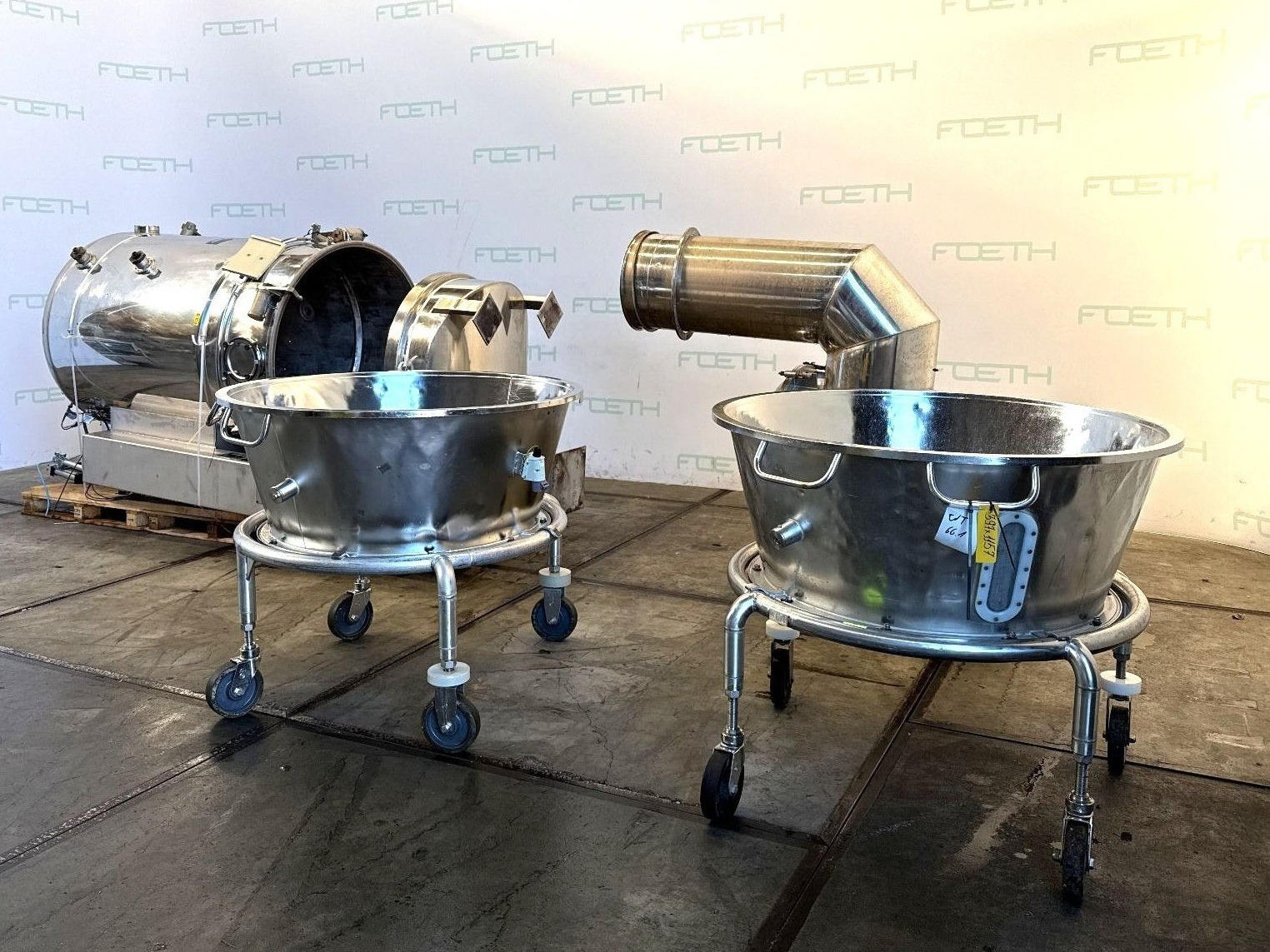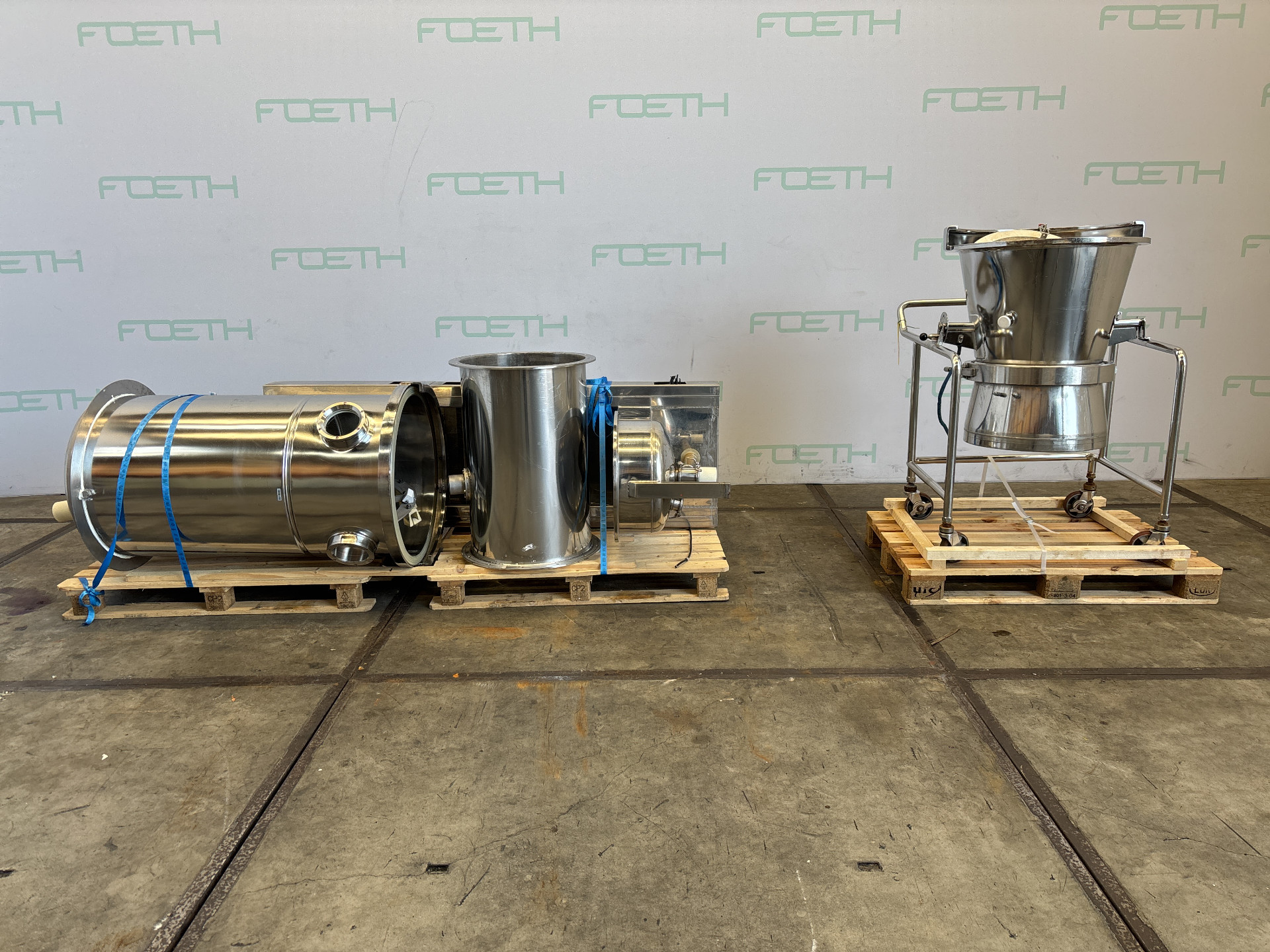 General SKUR1308 LocationBarneveld MakeAnhydro TypeSFP-59 (Spin Flash Dryer) No.E-866.219C Main Features MaterialStainless steel Motor18.5 KW Inlet diameter400 mm Specified Features - Spray dryer Spray dryerSpin Flash Dryer Drying tower dia.800 mm Cylindrical height± 2200 mm OutletDN 315 Motor11 kW 380-400-415/660-690 Volt Evaporation capacity347 kg/h (water) Air heating (gas)check With fancheck (2x) Capacity1: 3154 m³/h: 2: 6000 m³/h Motor1: 11 kW: 2: 18,5 kW MaterialStainless steel 1.4301 (304) Information Year of construction2006 Mounted on framecheck Floorspace2,1x2,1 m Total height4,5 m Extra Specificationswith: - feed vat Ø1000 mm, motor: 11kW 1500 rpm, RECONDITIONED Spray dryersReconditionedAnhydroDryers > Spray dryersReconditionedBrand > Anhydro What you can expect from Foeth: -- Machine is in working condition -- At a reduced price compared to new ...