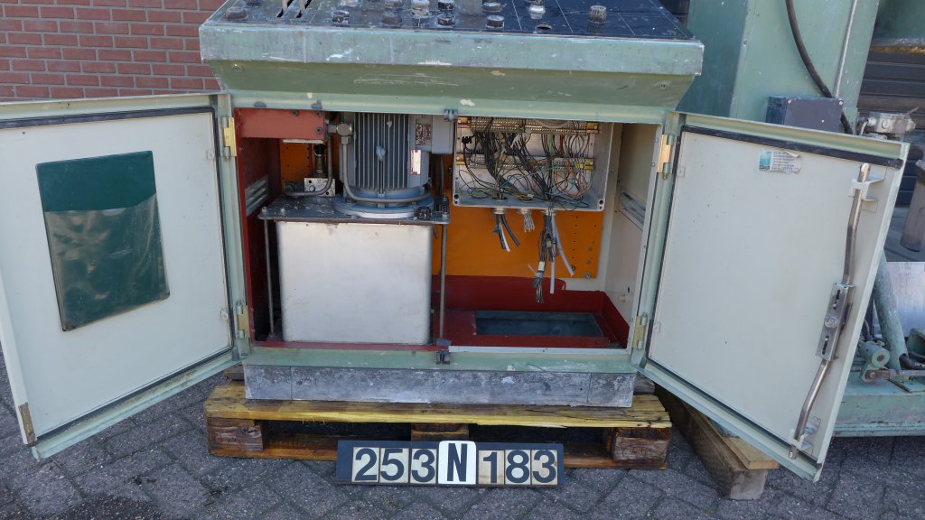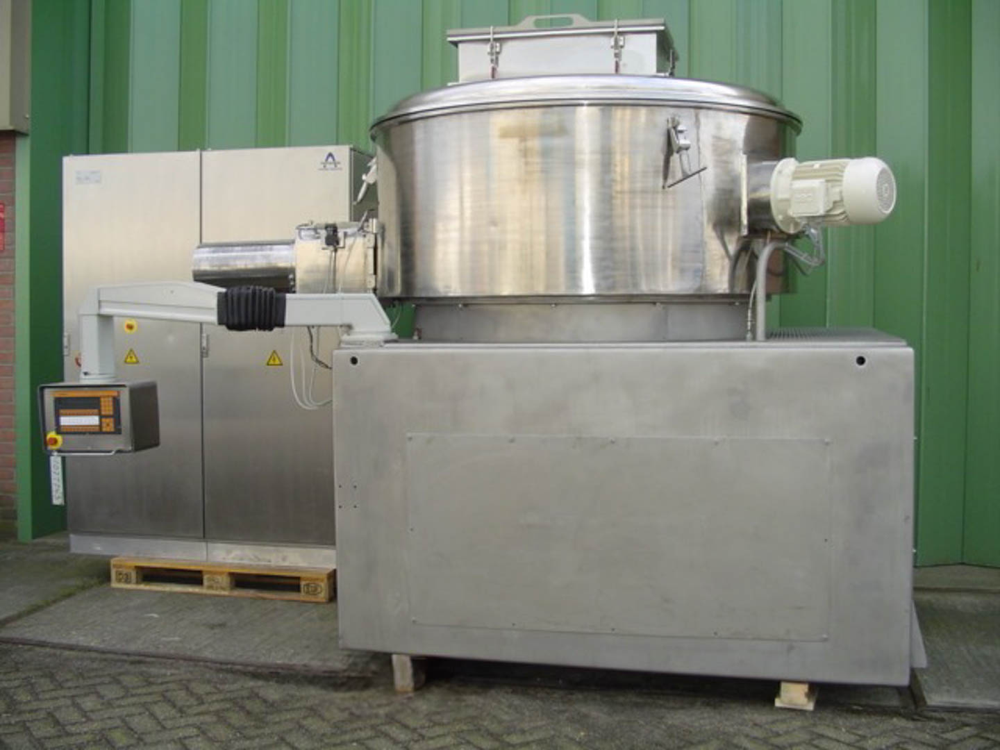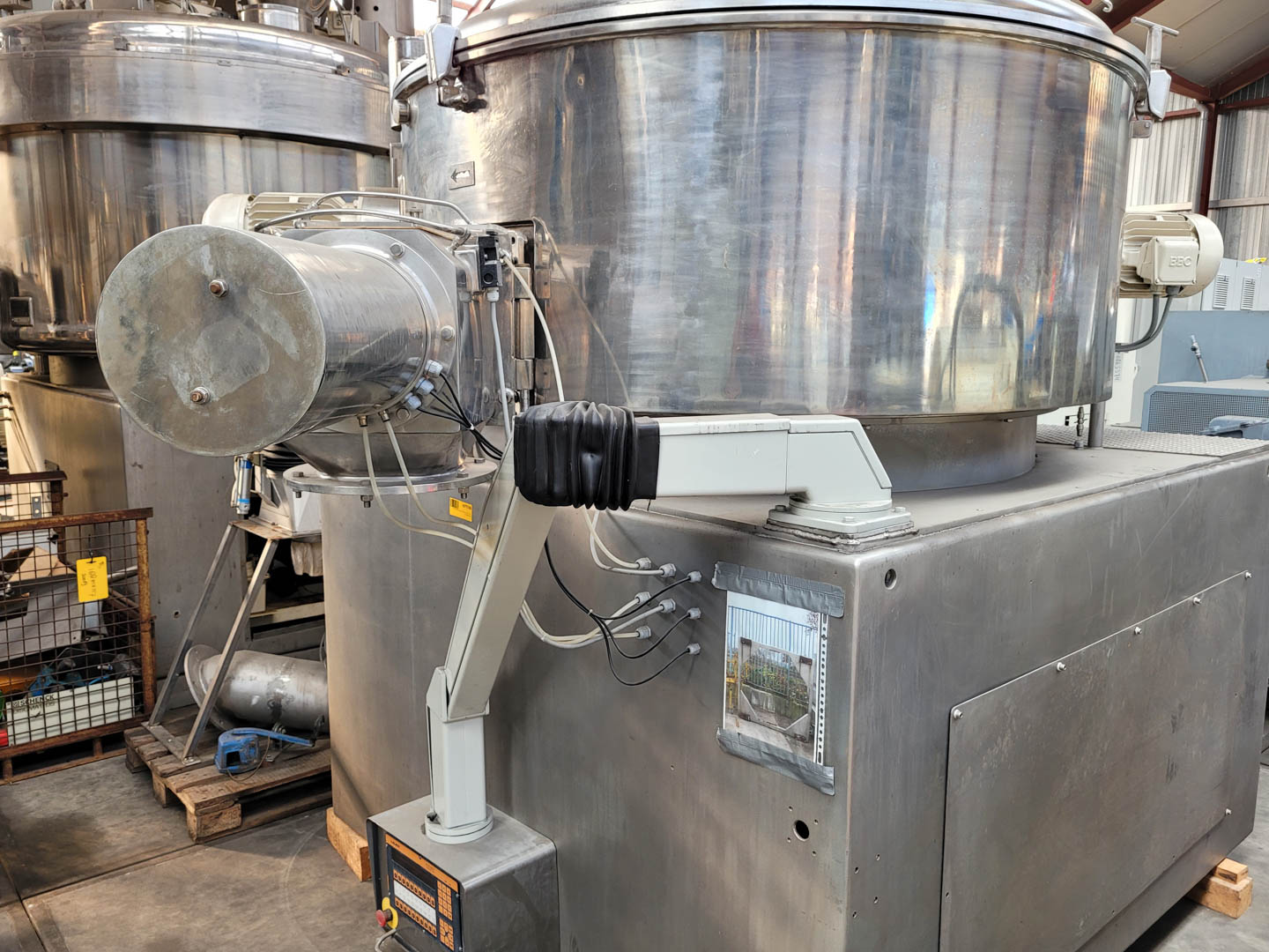 General SKU253N183 LocationBarneveld MakeJohann Kreuziger Maschinenfabrik TypeRDH 500 RERE No.21159 Pressure Working pressure0 Bar Vacuum possiblecheck Main Features MaterialStainless steel Volume450 Ltr. Motor80 KW Specified Features - Planetary mixer Planetary mixercheck 1 Mixing/kneading shaftmixer arm and dissolver disc With scrapercheck Motor57 kW (mixer): 20 kW (dissolver) With variable speed drivecheck With gear boxcheck With panø 950 x 650 mm (on wheels) Capacity450 l Outlet75 mm With hydraulic liftingcheck (3,6 kW) MaterialStainless steel Information Year of construction1986 With switchgearcheck (as is) Floorspace3,6 x 1,8 m Total height3,4 m Weight6000 kgCatalysts & fillersSolventsDetergent & surf.Other pharmaceuticsLubricants & oleoOther feedDyes & pigmentsMinerals & inorganicOther chemicalFine chemicalsOintmentsPaints & coatingsOils & fatPlanet ...