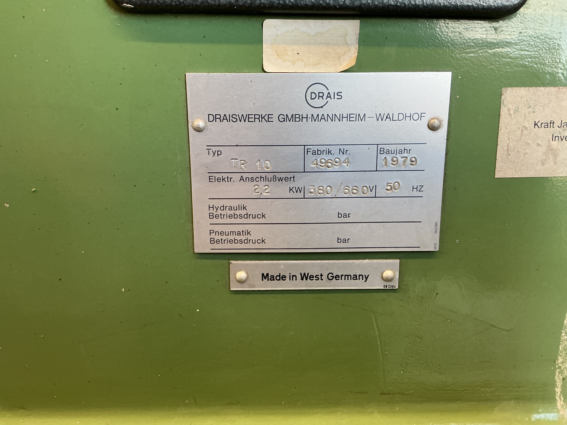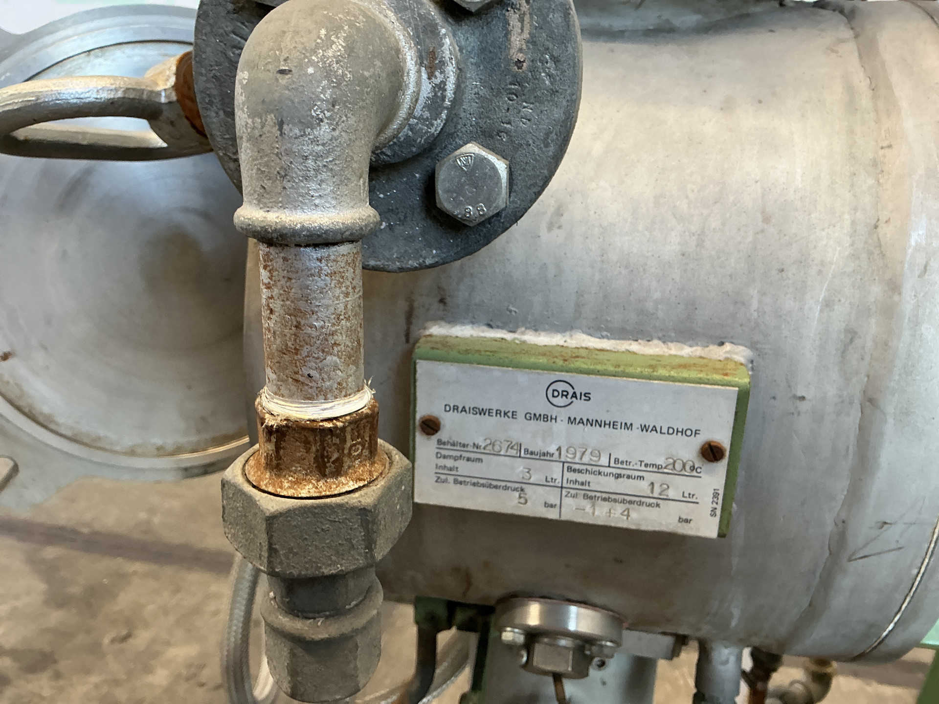 General SKU041K133 MakeDrais TypeTR10 No.49694 Year of construction1979 Mounted on framecheck Mounted on wheels Pressure Working pressure4 Bar Vacuum possiblecheck Working pressure jacket5 Bar Technical specs Max. temperature200 °C Main Features MaterialStainless steel Volume12 Ltr. Motor2.2 KW Specified Features - Paddle dryer Paddle dryercheck Capacity12 l Trough sizesø 250 x 250 mm Inletø 100 mm Outletø 50 mm With jacketcheck 3 l Max. temperature200°C. Motor2,2 kW, (380 V. 1470 rpm) With variable speed drivecheck Speed mixing shaft80-500 rpm MaterialStainless steel 1.4541 (321), Stainless steel 1.4571 (316Ti) Information LocationBarneveld With switchcheck Floorspace1,8 x 0,8 m Total height1,4 m Weight475 kgCatalysts & fillersFeed additivesDiscountOther pharmaceuticsCosmeticsSugarAnimal feedOther feedConfectionerySolid pharmaceuticsDyes & pigment ...
