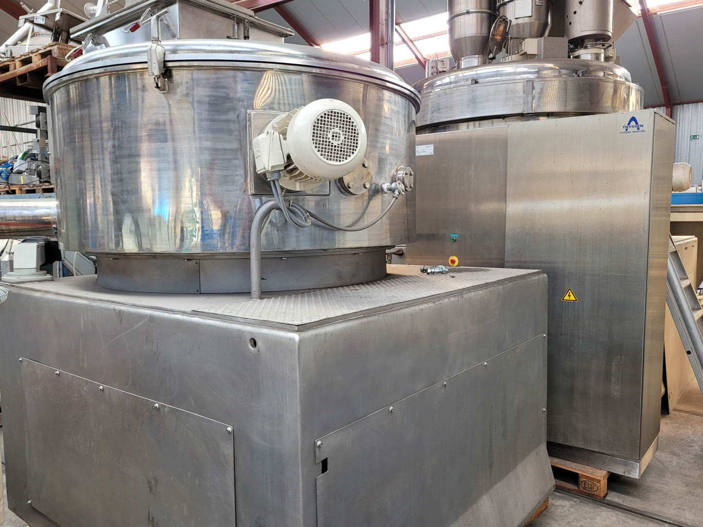 General SKU107T743 MakeThyssen Henschel TypeHU/G 1750 Mach.No.831952 Year of construction1987, in 1997 overhauled by Thyssen Henschel Specified Features - Universal mixer Material finishPolished inside and outside Main Features MaterialStainless steel Volume1750 Ltr. Motor90 KW Universal mixers Universal mixercheck Capacity1750 Ltr Vessel sizesDia: 1788x700 mm With covercheck Pneumatic operated outletcheck OutletDia: 250 mm With jacketcheck With motor60/90 kW, 380 Volt Rotor speed60/120 Rpm With lump breakercheck (2x) With motor6,5/8,0 kW, 380 Volt Rotor speed1500/3000 Rpm MaterialStainless steel 1.4541 (321) Information LocationBarneveld With switchgear(Dim. 1,6x0,7x2,1 Mtr) Floorspace3,3x2,0 m Total height2,5 m Extra Specifications- Air purged packing glands DiscountUniversal mixersThyssen HenschelDiscountMixers > Universal mixersBrand > Thyssen Henschel ...