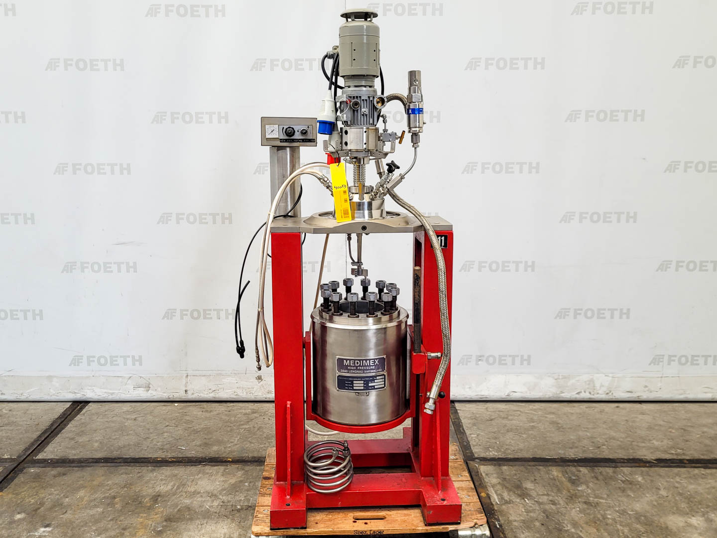 General SKU412T1301 LocationBarneveld MakeMedimex TypeMed. 260 No.170730 Pressure Working pressure300 Bar Main Features MaterialStainless steel Volume1 Ltr. Motor0.12 KW Specified Features - Stainless Steel Reactor Reactorcheck Capacity1 Ltr. Vessel sizes100x140 mm Top connections5/8 (2x), 3/4 (2x), 1/4 (2x) Half coil jacketedcheck Max. temperature300 °C With propellor stirrercheck Motor0,12 kW, 220-240/380-420 volt, 1390 rpm Stainless Steel Reactors MaterialStainless steel 1.4571 (316Ti) Information Year of construction1996 Mounted on legscheck Floorspace0,45x0,45 m Total height1,95 m Weight180 kg ATEX compatiblecheckCatalysts & fillersStainless Steel ReactorsSolventsDetergent & surf.Other pharmaceuticsCosmeticsOrganicsLubricants & oleoSolid pharmaceuticsDyes & pigmentsAPIMinerals & inorganicPlastic & polymersAgrochemicalsRubberOther chemicalFine chemicals ...