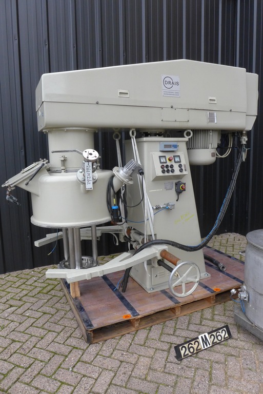 General SKU262M262 LocationBarneveld MakeDraiswerke GmbH Mannheim TypeRN 2-24 No.52780 Material Pan materialStainless steel Pressure Working pressure0 Bar Vacuum possiblecheck Main Features MaterialStainless steel Volume300 Ltr. Motor24 KW Specified Features - Dissolver MaterialStainless steel Dissolver/Homogenising vacuum mixer (1x) Shaft length± 900mm Disc diameterdia. 400mm With covercheck Motor24,0 KW, 380 Volt (Ex) With panscheck Capacity± 300 Ltr Pan sizesdia. 790x600mm Outletdia. 65mm With jacketcheck With hydraulic liftingcheck Information Year of construction1986 Mounted on wheelscheck With switchcheck Floorspace2,8x1,5 M Total height2,4 M Weight2400 KG ATEX compatiblecheckCatalysts & fillersSolventsDetergent & surf.Other pharmaceuticsLubricants & oleoOther feedDyes & pigmentsMinerals & inorganicOther chemicalFine chemicalsOintmentsPaints &  ...