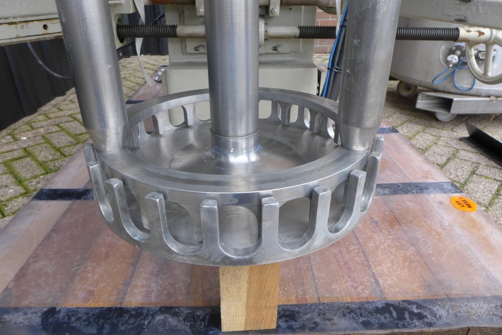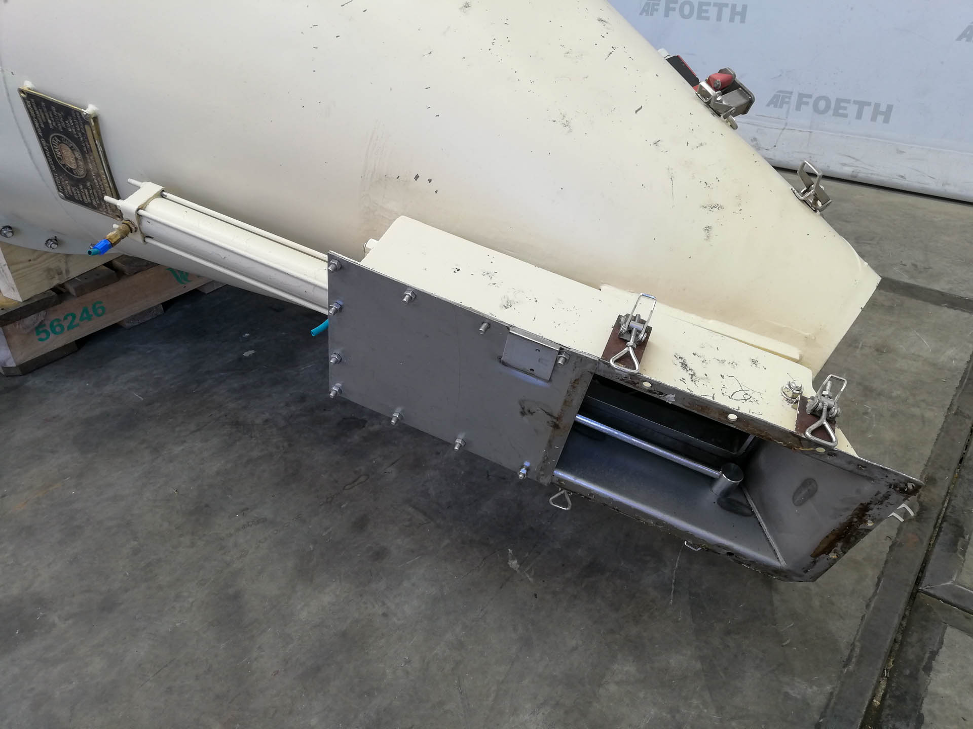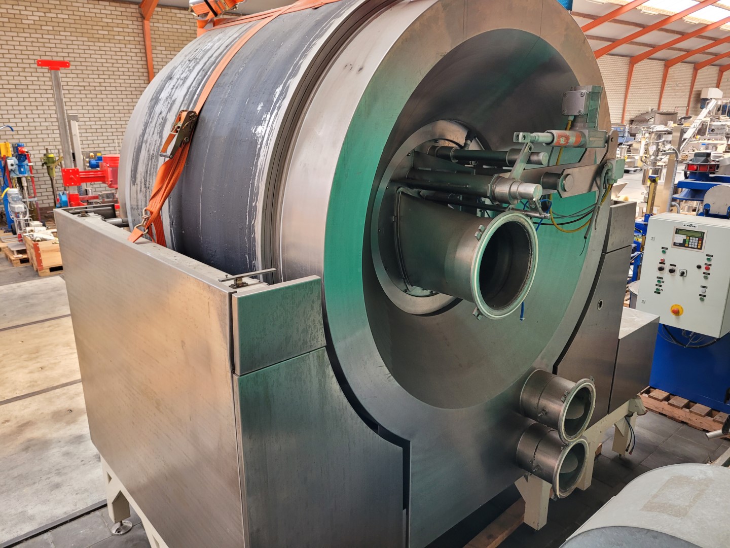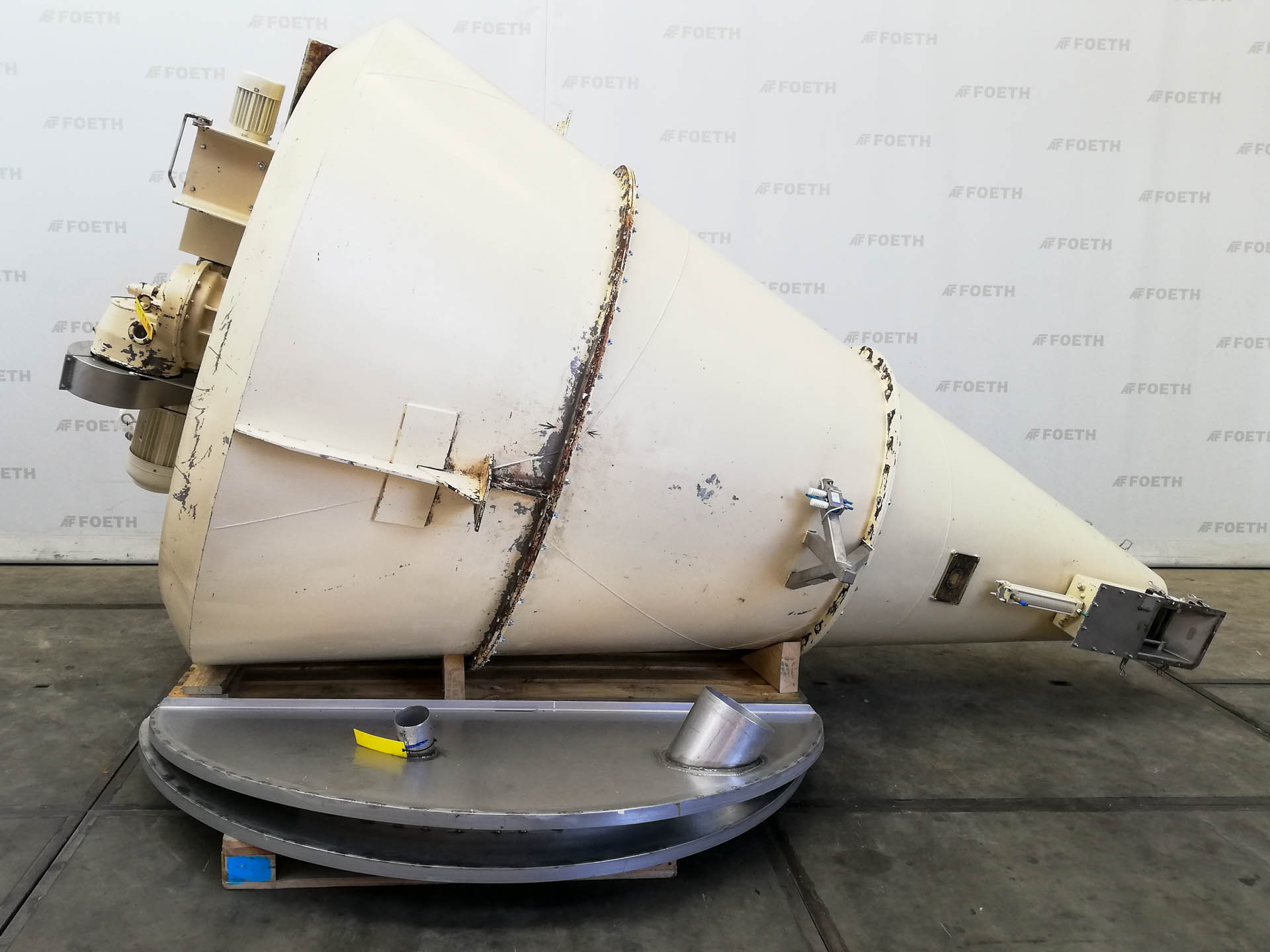 General SKU098N558 MakeLödige TypeFKM-8000D No.4546 (vessel no. 404) Year of construction1968 LocationBarneveld Pressure Working pressure2 Bar Vacuum possiblecheck Main Features MaterialStainless steel Volume8000 Ltr. Motor33 KW Specified Features - Powder turbo mixer Paddle dryer(1x) Capacity8000 l Trough sizesdia. 1580 x 4000 mm Inletdia. 500mm + dia. 400mm + dia. 200mm Outletdia. 150 mm With jacket(550 l) Max. temperature215°C Motor33 kW, 500 Volt Speed mixing shaft± 23 rpm Powder turbo mixers MaterialStainless steel 1.4541 (321) Information Floorspace6,8 x 1,9 m Total height2,6 m Extra SpecificationsTop connections dia. 500 mm + dia. 400 mm + dia. 200 mm Catalysts & fillersFeed additivesDiscountOther pharmaceuticsCosmeticsSugarAnimal feedOther feedConfectionerySolid pharmaceuticsDyes & pigmentsBiopharmaceuticalAPIPowder turbo mixersMinerals & inorgani ...