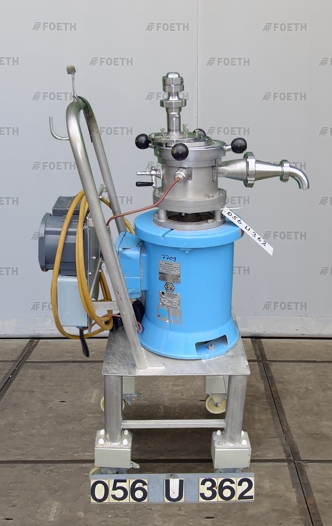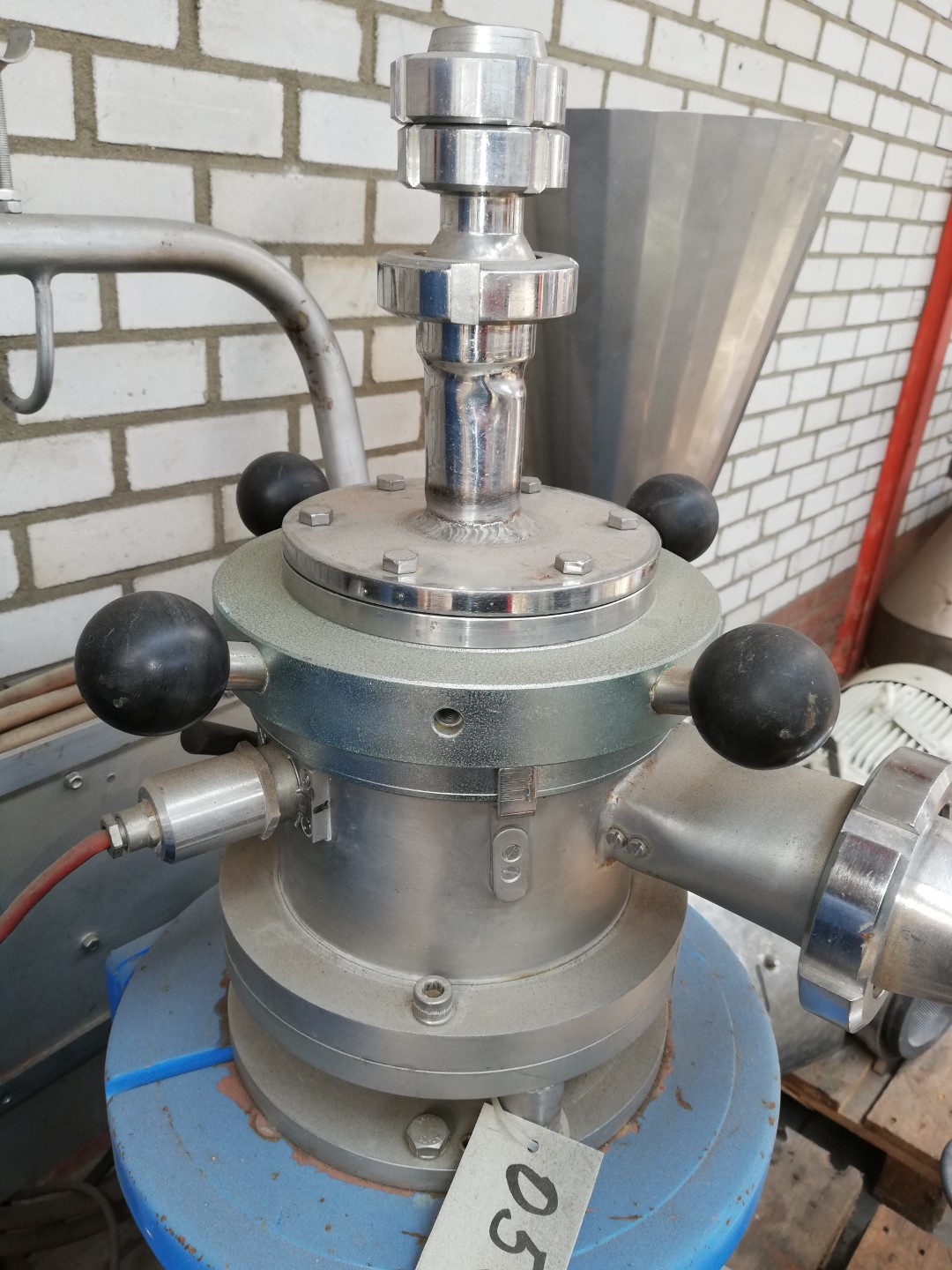 General SKU056U362 MakePUC Probst & Class TypeK-100 No.91079 Year of construction1991 LocationBarneveld Material Rotor materialStainless steel Main Features MaterialStainless steel Motor5.5 KW Inlet diameter50 mm Specified Features - Colloid mill MaterialStainless steel Colloid mill in line(1x) Rotor sizesø 100 mm Teethed rotorcheck Without hoppercheck InletDN50 OutletDN50 Motor5,5 kW (400 V, 2905 rpm (Ex)) Speed2905 rpm Information Mounted on wheelscheck With switchcheck Floorspace0,9 x 0,6 m Total height1,3 m Weight125 kg ATEX compatiblecheckDiscountColloid millsPuc Probst & ClasDiscountMills > Colloid millsBrand > Puc Probst & Clas What you can expect from Foeth: -- Machine is in working condition -- At a reduced price compared to new -- Ready for shipping to any destination worldwide -- You are welcome to inspect the machine in Barneveld, The Netherland ...