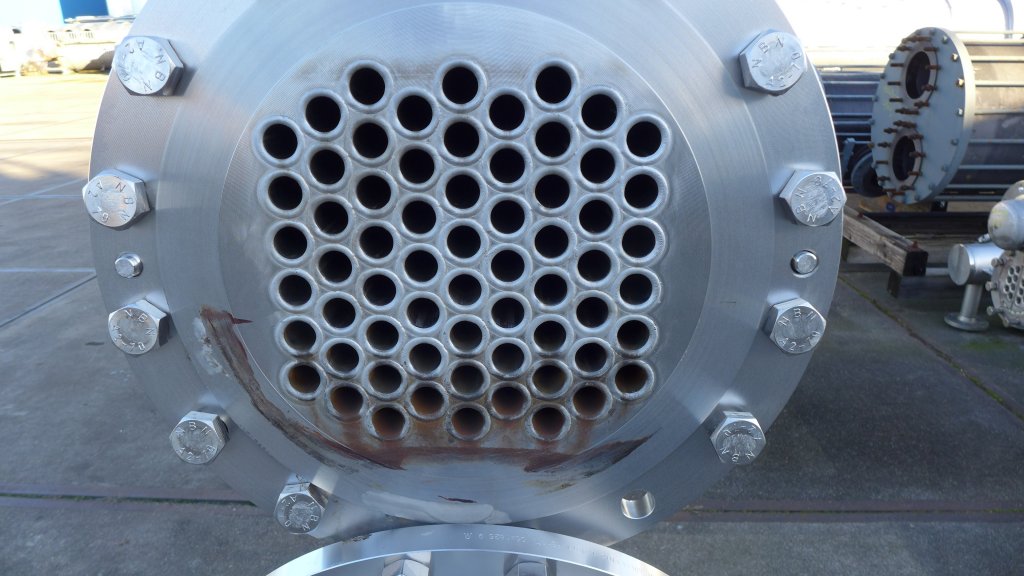 General SKU309N504 MakeFalk Gmbh&Co KG No.24320 Year of construction2007 Mounted on legscheck Material Shell materialStainless steel 1.4571 (316Ti) Tube materialStainless steel 1.4571 (316Ti) Pressure Working pressure shell0.49 Bar Working pressure tubes6 Bar Main Features Shell (Material)Stainless steel Tube (Material)Stainless steel Surface25 m2 Specified Features - Shell and tube heat exchanger Heat exchangercheck Horizontalcheck Notified bodyAD2000 Heating surface25m2 Tube capacity140 Ltr Number of tubes:64 Tube diameter25,4mm Tube length5000mm Wall thickness tubes1,6mm Max. temperature60 degr.C. Shell capacity317 Ltr Shell diameter356mm Shell length5000mm Max. temperature100 degr.C. Shell connectionsdn65 Cover connections(2x)dn80 Information LocationBarneveld Floorspace5,7x0,7 M Total height1,0 M Weight800 KGCatalysts & fillersFeed additivesPape ...