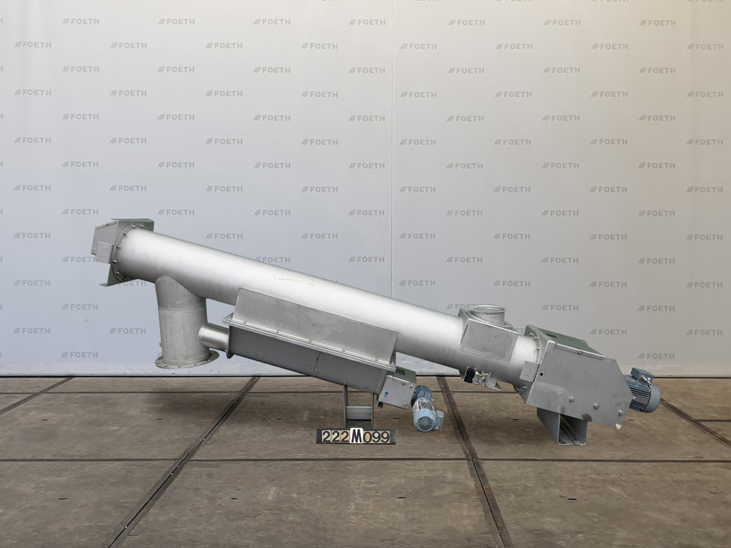 General SKU222M099 LocationBarneveld Main Features Motor4 KW Length2900 mm Inlet diameter340 mm Specified Features - Vertical screw conveyor MaterialStainless steel Vertical conveyor screws Horizontal conveyor screwConveying and metering screw (1x) Diameterscrew 1= dia. 340mm, screw 2= dia. 150mm Lengthscrew 1= 2900mm, screw 2= 1350mm Between inlet and outlet± 2200mm Inletdia. 210mm Outletdia. 320mm Motor4,0 KW, 220/380 Volt + 0,75 KW, 400 Volt Information Makeunknown (manufacturer tag is missing) Floorspace4,0x0,5 M Total height1,6 M Weight480 KGCatalysts & fillersFeed additivesPaper & otherSolventsDetergent & surf.Other pharmaceuticsCosmeticsOrganicsE-waste & metalFood additivesSugarLubricants & oleoDairyAnimal feedOther feedVertical screw conveyorsConfectionerySolid pharmaceuticsBeveragesDyes & pigmentsBiopharmaceuticalAPIPlastic & rubberMinerals & inorganicPlas ...