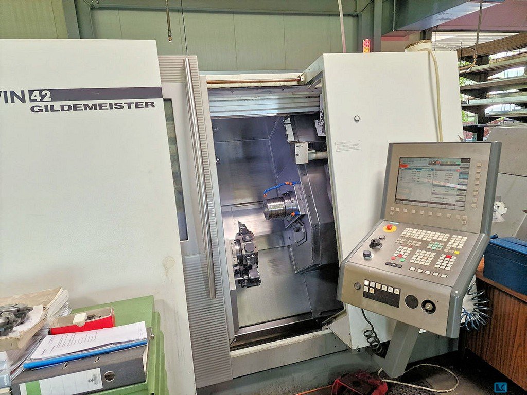 turning diameter:220 mmturning length:- mmcontrol:- distance between milling spindels:800 mmspindle speed max.:12.000 U/mindaylight:66 mmmachine weight ab.:11 ttotal power requirement:90 kVAFanuc controlTwo turretsTwo spindlesSpindle bore 66 mm on both spindlesTwo Y-axesParts gripperHainbuch chuck on both spindlesTailstock functionChip conveyorTool eyeShort bar loaderTool holder package