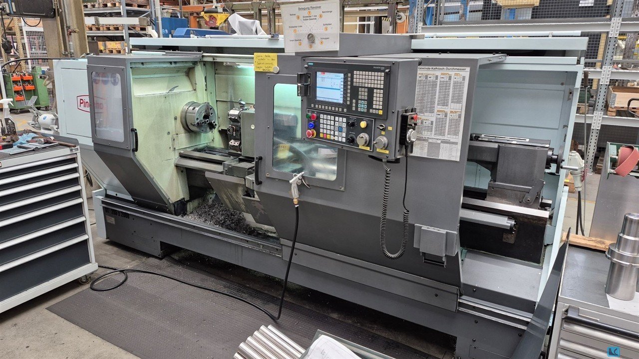 turning diameter:570 mmturning length:- mmcontrol:- Diameter of rotation above the bed slide:360 mmMaximum width:2.000 mmrevolutions per minute:max. 2500 U/min:11 kWmax. longitudinal feed:7,5 m/minmax. transverse feed:7,5 m/minrapid traverse longitudinal:12 m/minrapid traverse cross:15 m/minPinole diameter:95 mmPinolenhub:220 mmPinolen intake: MK 5 weight of the machine ca.:2,97 tdimensions of the machine ca.:3,8m x 1,3m x 2m mTechnical description:- Tool turret - automatic - 8-fold (see also options) - CAPTO Revolver Disc- Machine bed - made of perlite casting GG-26- high stiffness due to strong ribbing- Bed slides - guideways hardened and ground- automatic lubrication of the bed rail- Reitstock - manual- Quick clamp- Operator station - two movable handwheels on the operator panel- a movable handwheel- Control - "Siemens 828 D" CNC control- Siemens "Comfort" (including Shopturn and re ...