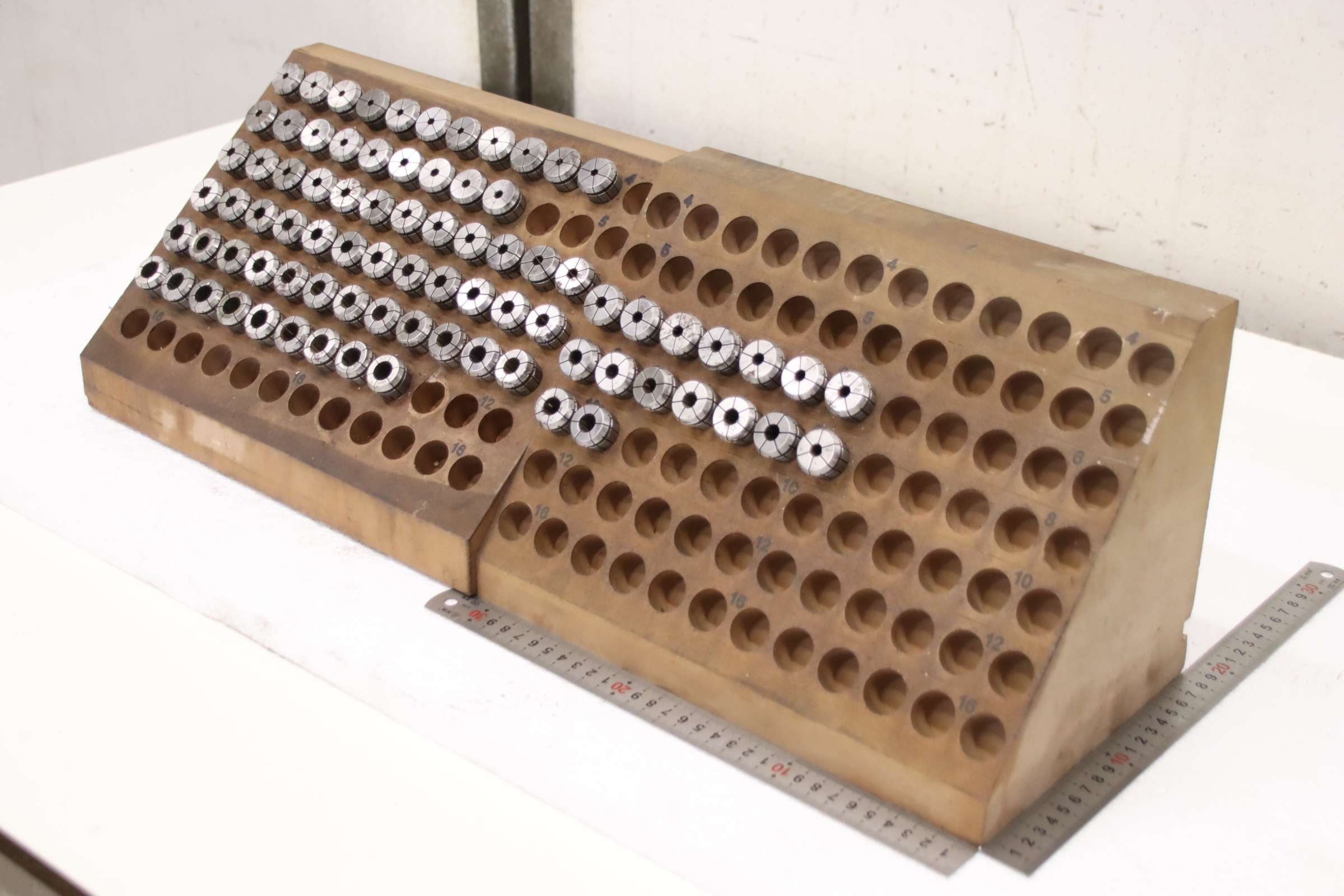 Collet head, pressure collet, collet sleeves, collet, tool holder, tool holder, milling chuck, milling tool, collets -Clamping sleeves: Ø23 x 33 mm, 81 pieces Sizes: Ø 4/5/6/8/10/12 mm, see photos / parts list -Price/Fee: complete -Transport dimensions: 555/205/H190 mm -Weight: 15.2 kg