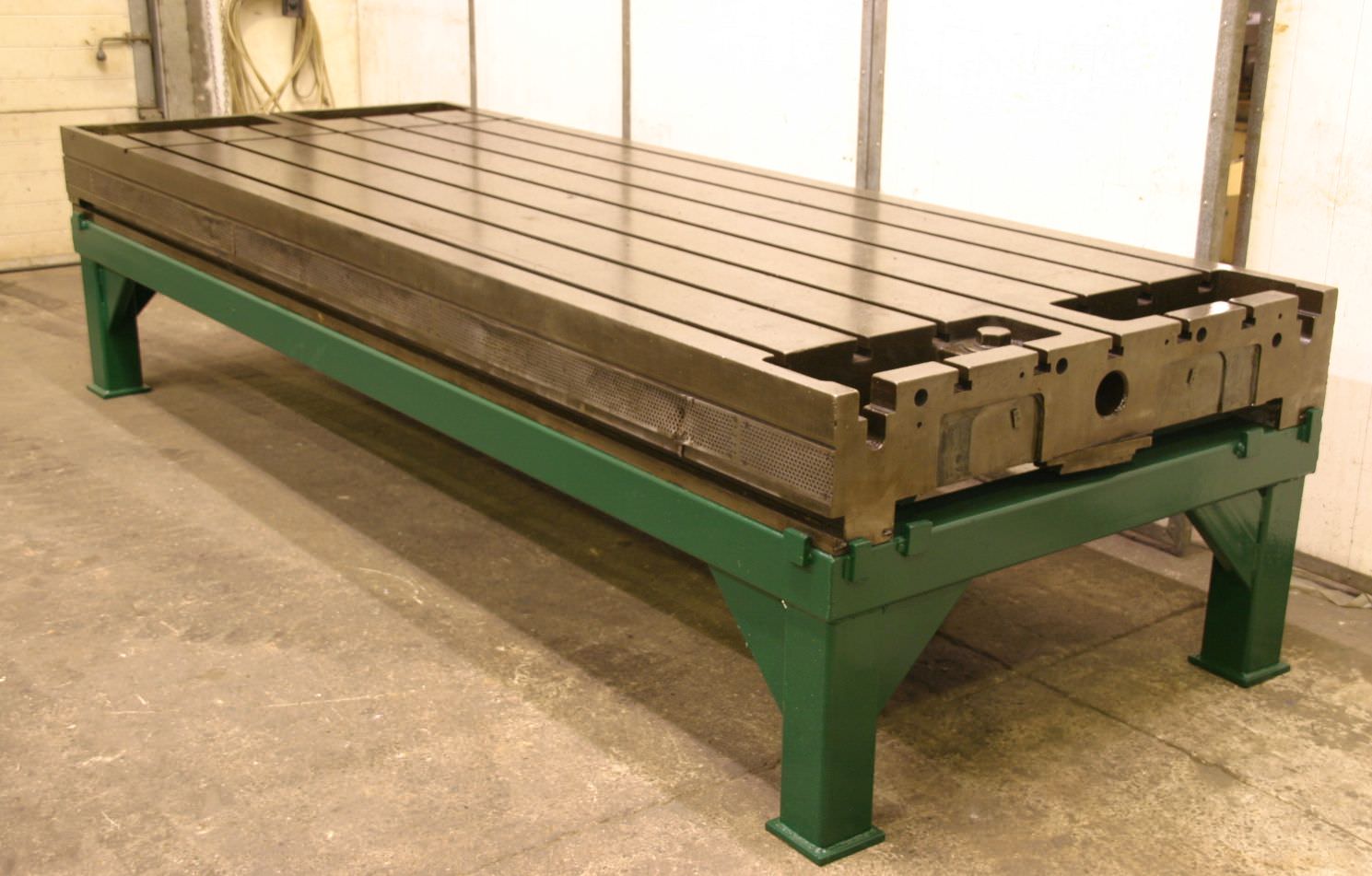 Clamping plate with T slots, plate field, welding table, welding table, plate boring machine -Width: 1320 mm -Length: 3530 mm -Height: 830 mm -Plate thickness: 75 mm -Plate: with support ribs -Groove width: 23 mm -Weight: approx. 3500 kg
