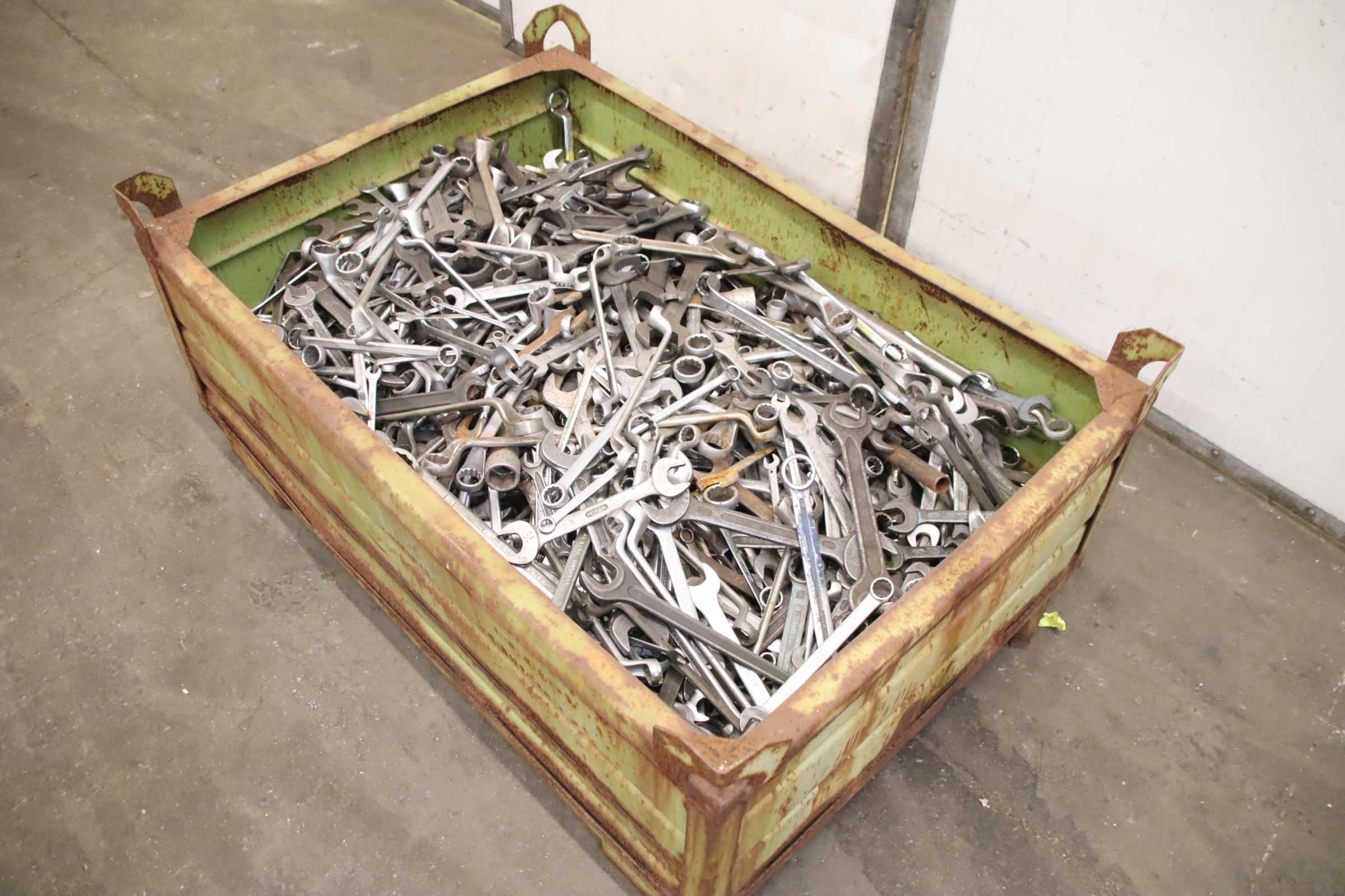 Open-end wrenches, ring wrenches as remaining stock -Open-end/ring wrenches: various sizes, with transport case -Weight of tool: approx. 400 kg Manufacturer: various brand manufacturers, see photos -Submission/Price: complete -Transport box: 1200/810/H350 mm Total weight: 466 kg
