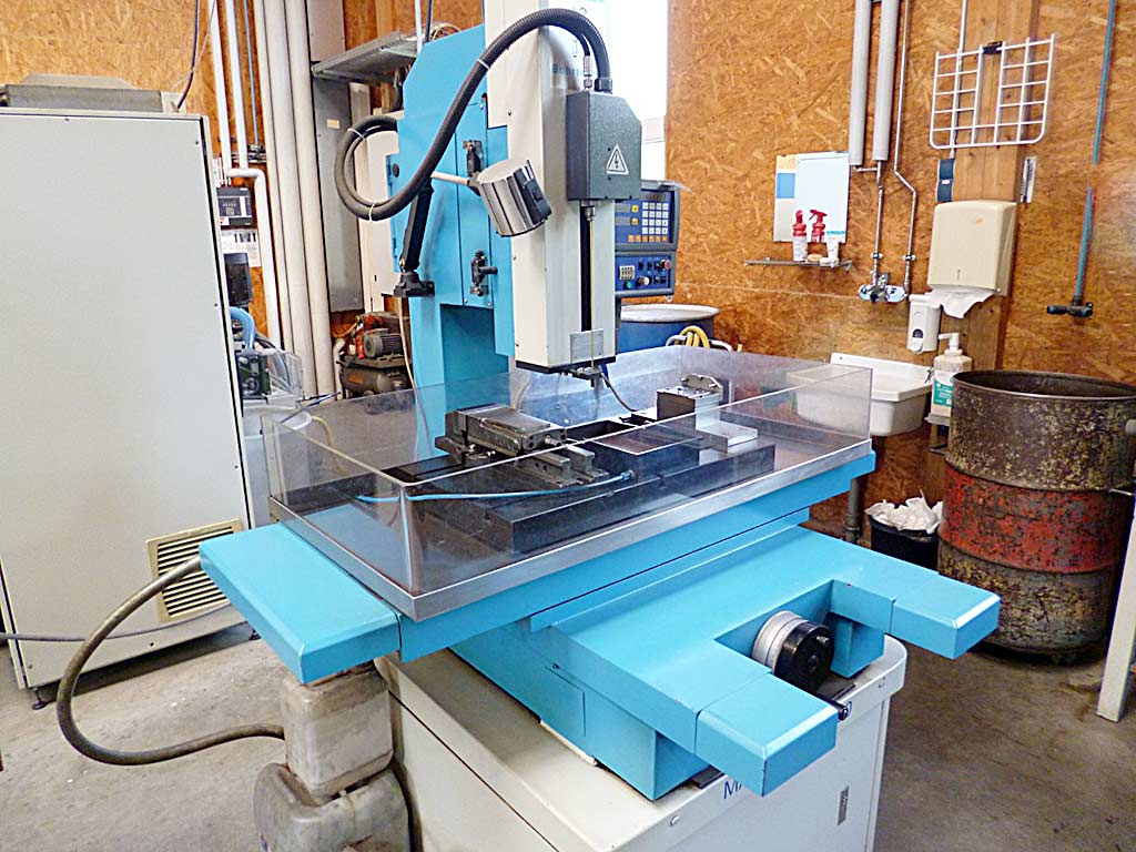 Está disponible una máquina de perforación de orificio inicial llamada Madra-EDM. Dimensiones de sujeción X/Y: 600mm/400mm, altura máxima de la pieza: 300mm, recorrido X/Y: 500mm/400mm, ancho de recorrido: 250mm, recorrido Z: 0,01mm-380mm, longitud máxima del electrodo: 400mm, peso máximo de la pieza: 500kg, rango de diámetro de perforación: 0,3mm-3mm. Dimensiones de la máquina X/Y/Z: aprox. 1300mm/1300mm/2000mm, peso: aprox. 1000kg. La electrónica de la máquina es defectuosa, ya que no se proporciona la corriente para el proceso de erosión. Dokumentation vorhanden. Es posible realizar una inspección in situ.