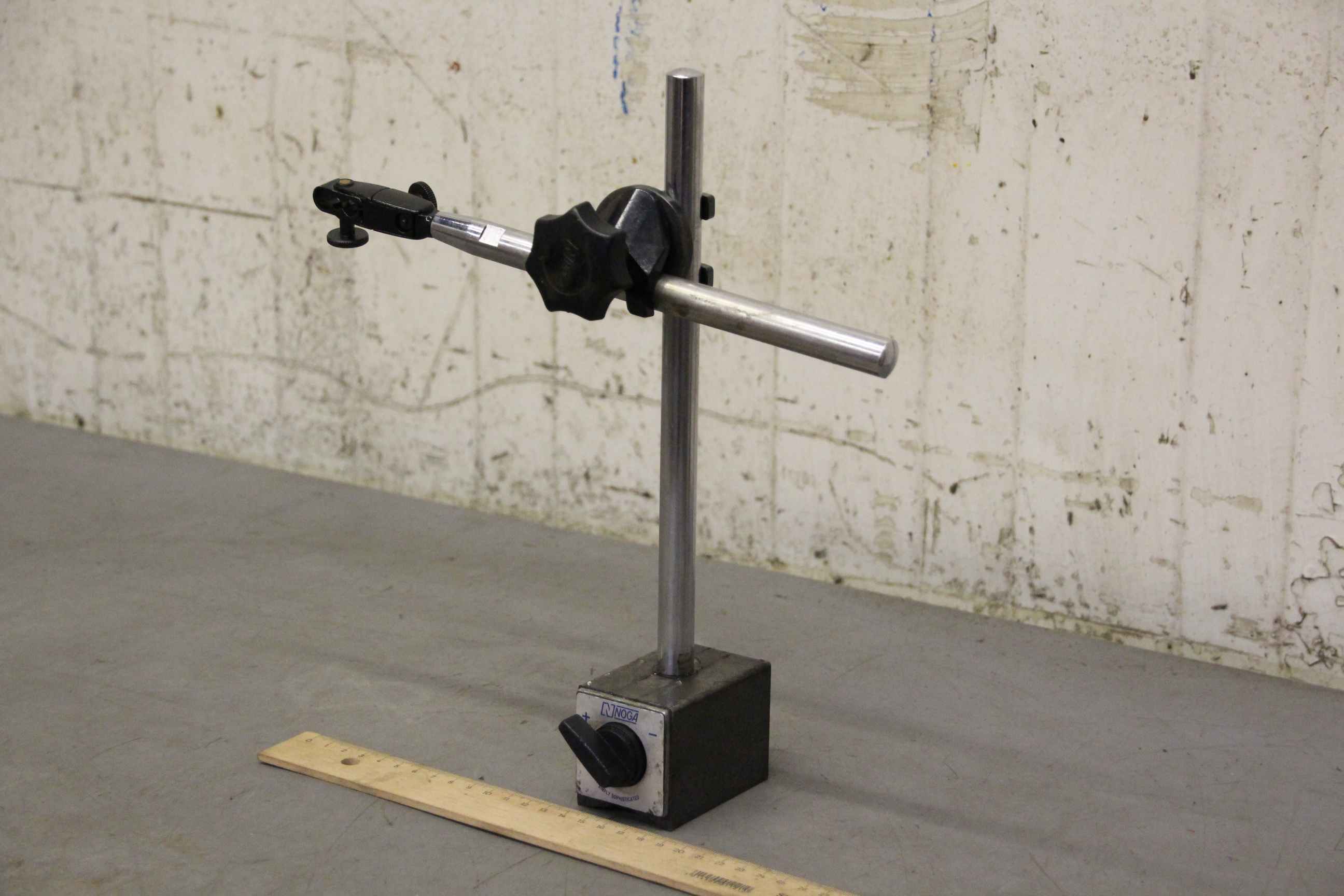 Measuring stand, tripod, dial indicator holder, dial indicator, test stand, dial indicator holder, precision measuring table, precision measuring table, micrometer holder, dial indicator stand, magnetic measuring stand, dial indicator stand-Manufacturer: Noga, magnetic measuring stand with fine adjustment type N1-Fine adjustment: on the dial gauge holder-Dimensions: 100/50 / H340 mm-Weight: 2.1 kg