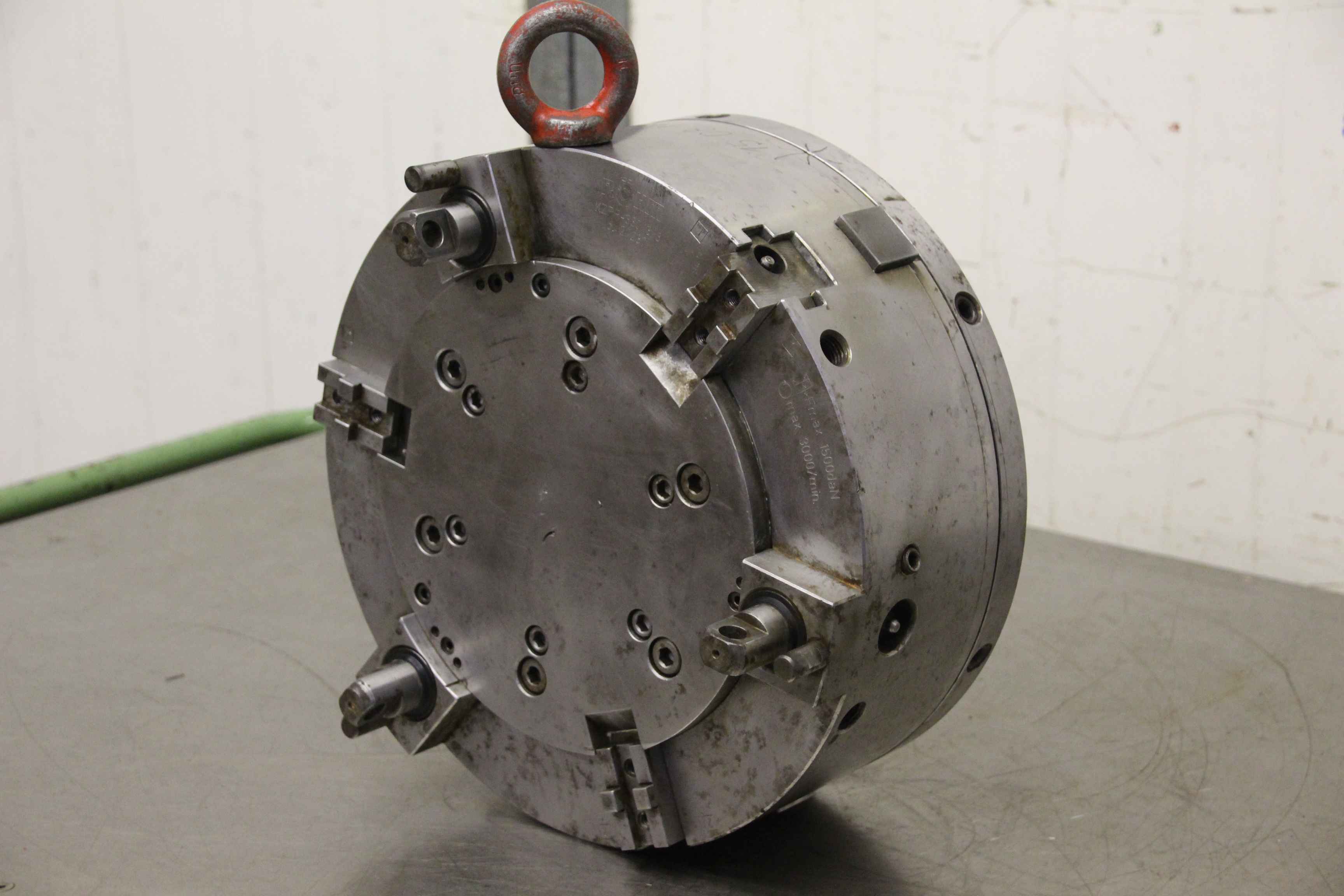 4-application chucks, wedge bar chucks, three-jaw chucks, three-jaw lathe chucks, power chucks, hydraulic chucks-Chuck size: Ø 330 mm-Tensioning force: max. 1500 daN-Thread: M16-Weight: 83 kg