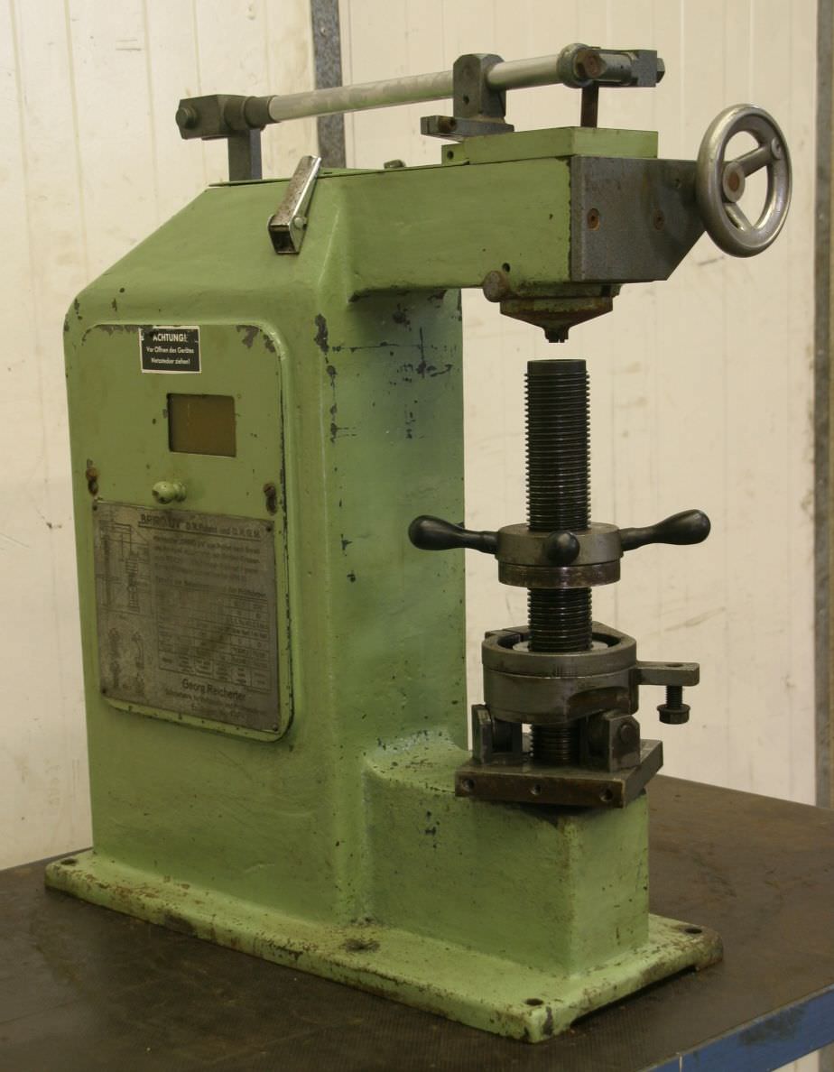 Hardness tester, hardness measuring machine, hardness tester, hardness tester -Hardness tester: according to Brinell and Rockwell -Accessories are missing and are therefore sold as defective -Transfer in current condition as seen -Dimensions: 600/220/H660 mm -Weight: 92 kg