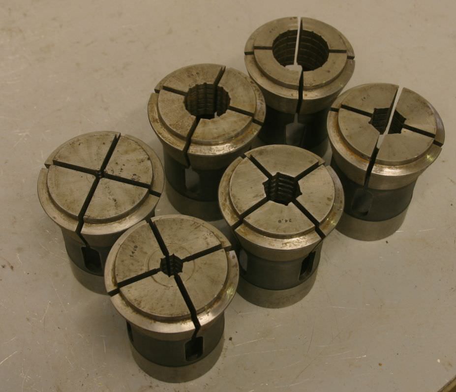 Collet collet sleeves, collet chuck, tool holder, tool holder, milling holder, milling tool, clamping sleeves -Number: 3x collet holders 6/34/46 mm diameter -Number: 3x collet chucks 14/24/24 mm hexagon -Outer diameter recess: Ø 77 mm -Cone: approx. Ø 93/75 mm -Total length: 120 mm -Weight: 12 kg