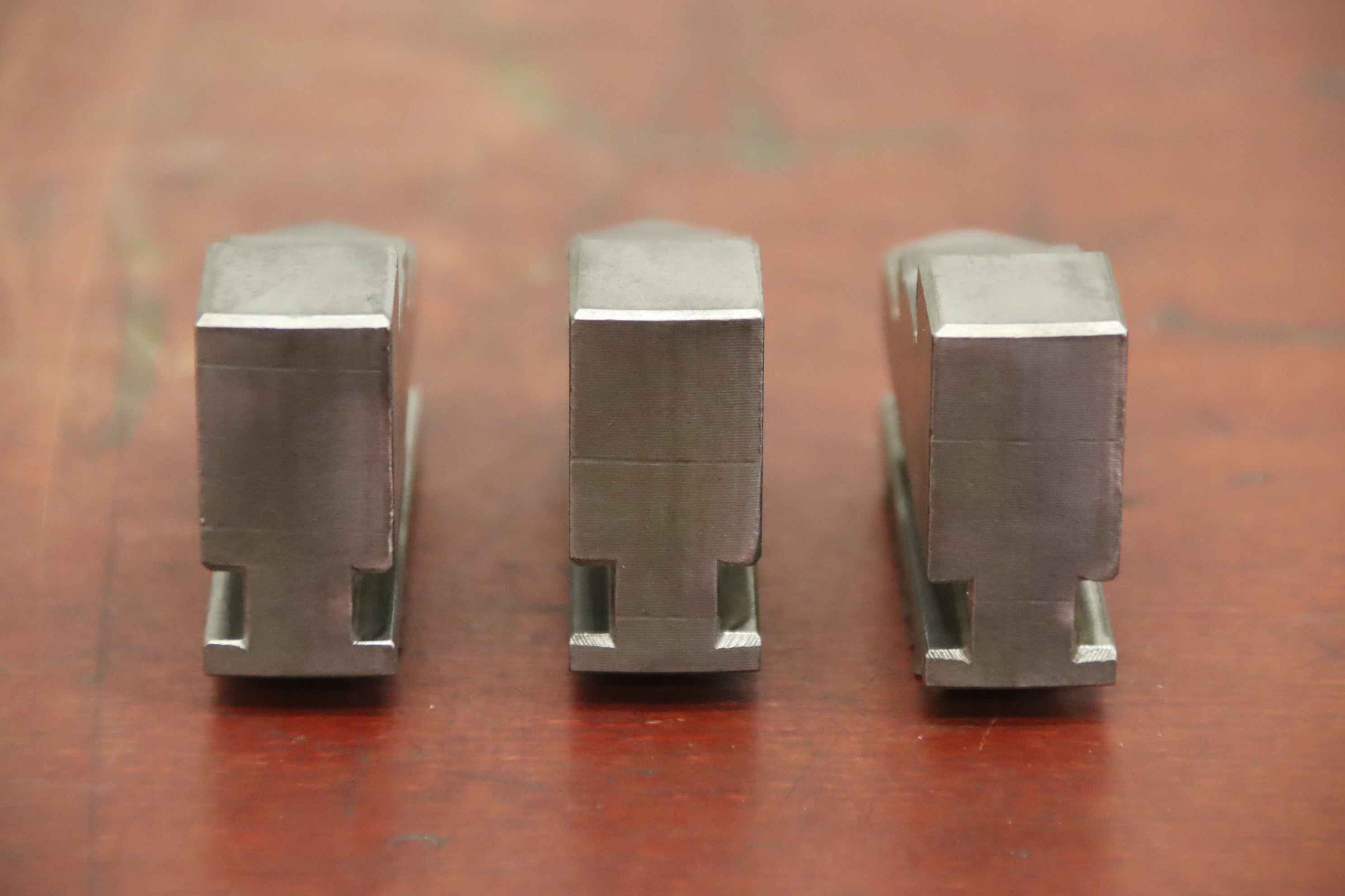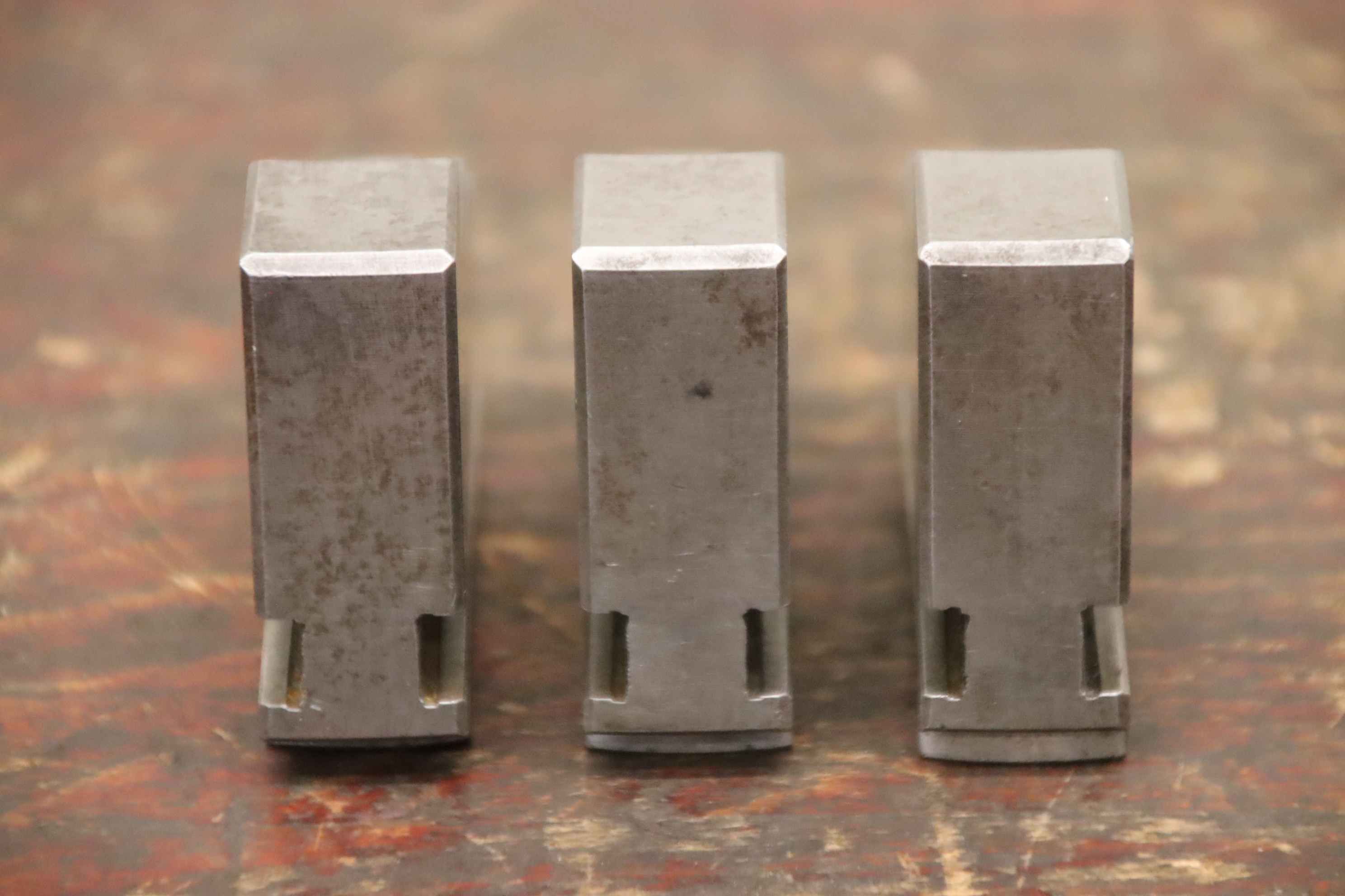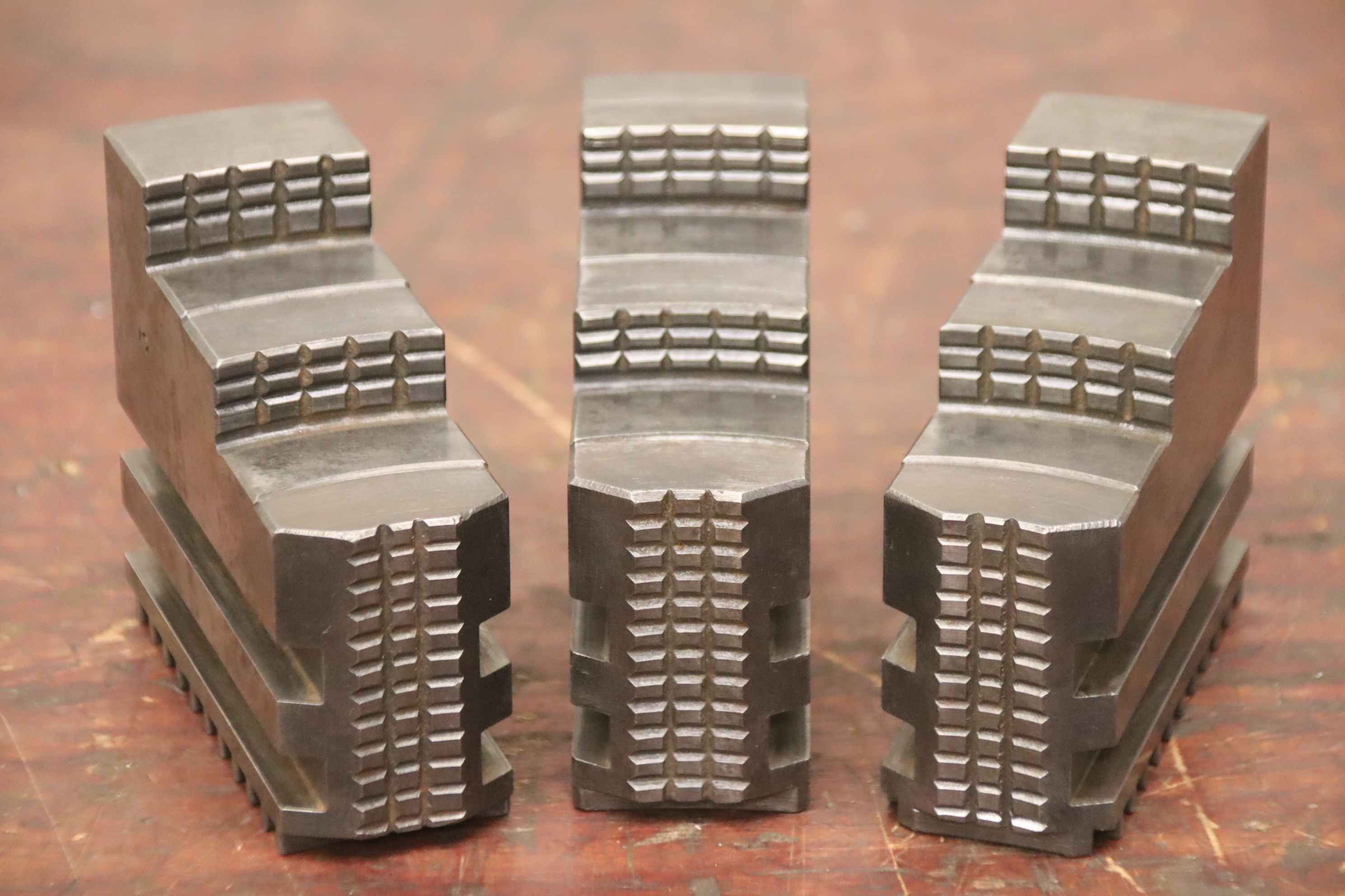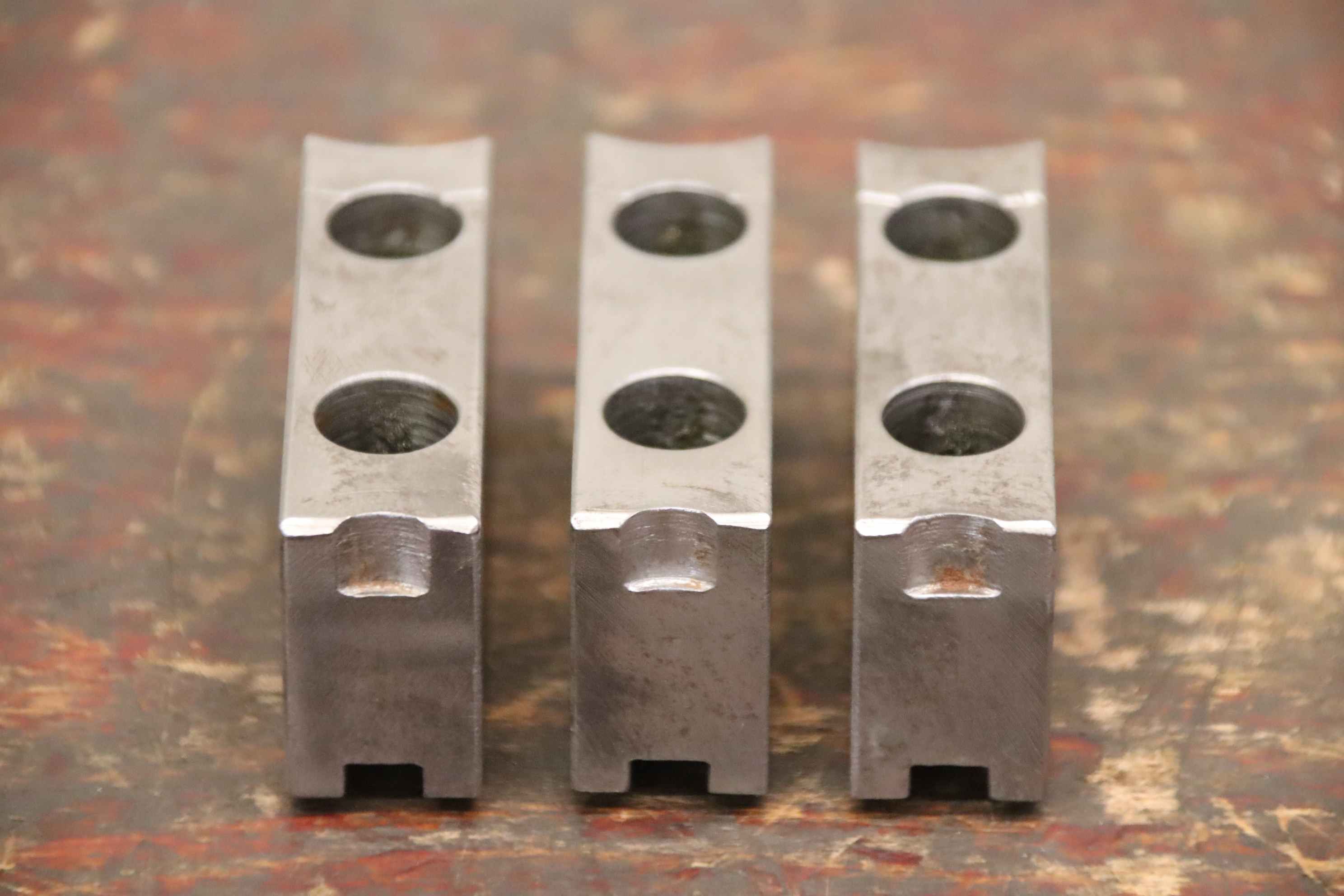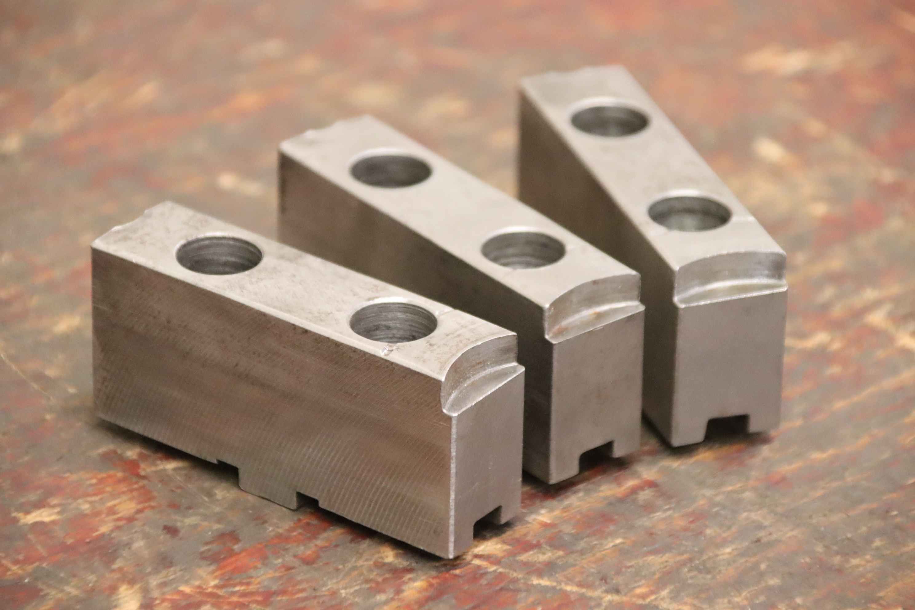 Interchangeable jaws, top jaws, three-jaw chucks, segment jaws, clamping jaws, step block jaws, step top jaws, block jaws, base jaws, 4-jaw set-Top jaws: Jaw set for three-jaw lathe chucks, hard-Jaw width: 20 mm-Dimensions: see photo technical. drawing-Total dimensions: 85/66/H62 mm-Total weight: 1.7 kg