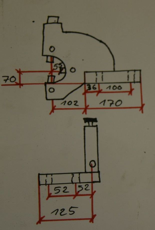 Moving steady rest, moving steady rest, steady rest, lynette -Max. Passage: Ø 110 mm -Edition: gray cast iron -Hole spacing: 100 mm -Tip height: 70 mm -Drawing with the photos -Dimensions: 340/300/H150 mm -Weight: 18 kg