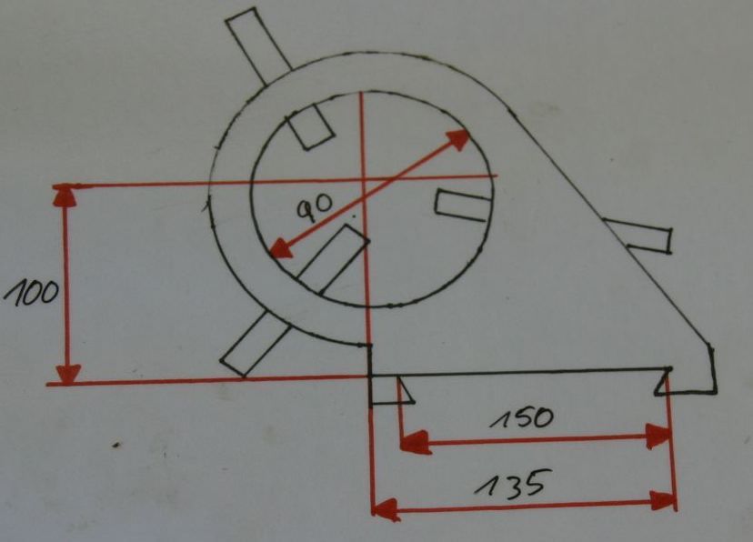 Bezel, stick, lynette -Max. Passage: Ø 90 mm -Tip height: 100 mm -Edition: gray cast iron -technical drawing with the photos -Dimensions: 280/280/H110 mm -Weight: 8 kg