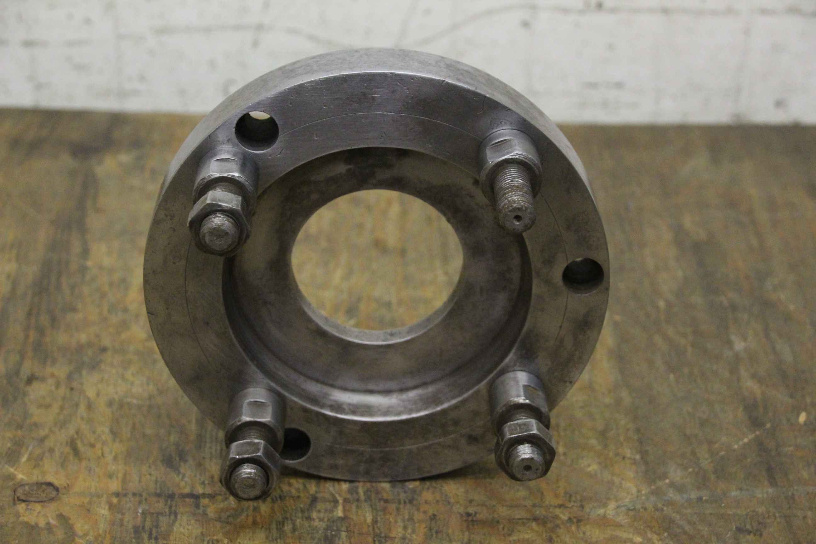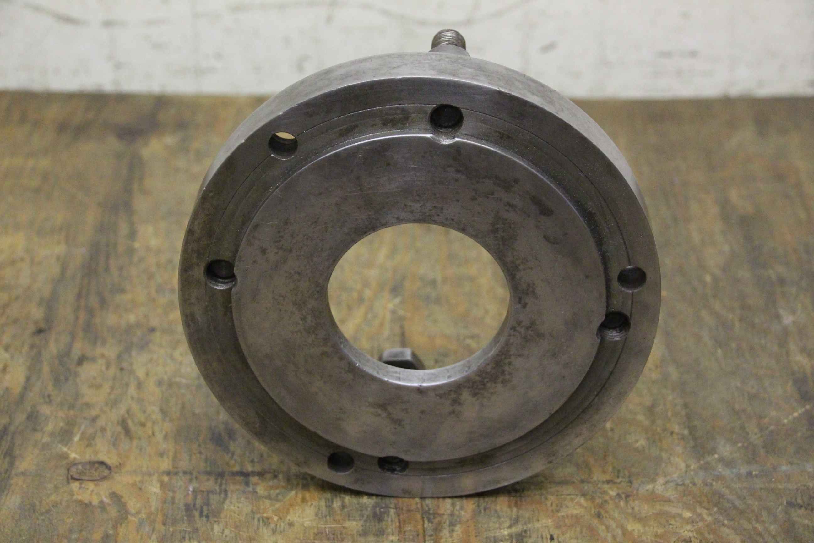 Chuck flange, flange mount, lathe chuck flange, driving flange-Chuck flange for: three-jaw chuck, four-jaw chuck, face plate-Outer diameter: 210 mm-Interior diameter: 80 mm-Short taper mount, cone size: 8-Hole circle: Ø 170/185 mm-Dimension: Ø 210/90 mm-Weight: 6 kg