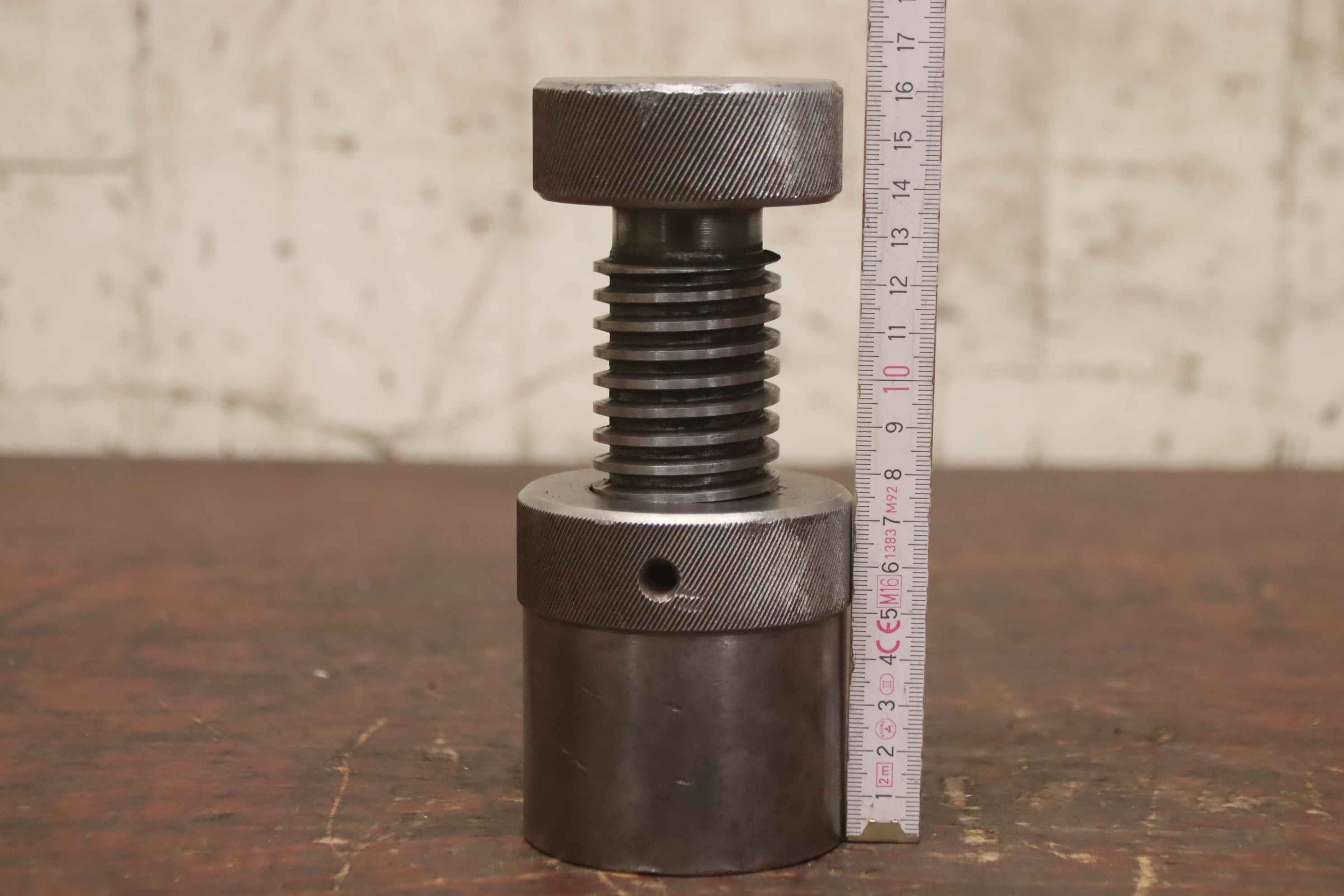 Knurled screw handwheel-Knurled screw: handwheel-Length: 100 to 163 mm-Thread: trapezoidal thread see photos-Dimensions: Ø 72 x 100 mm-Weight: 2.7 kg