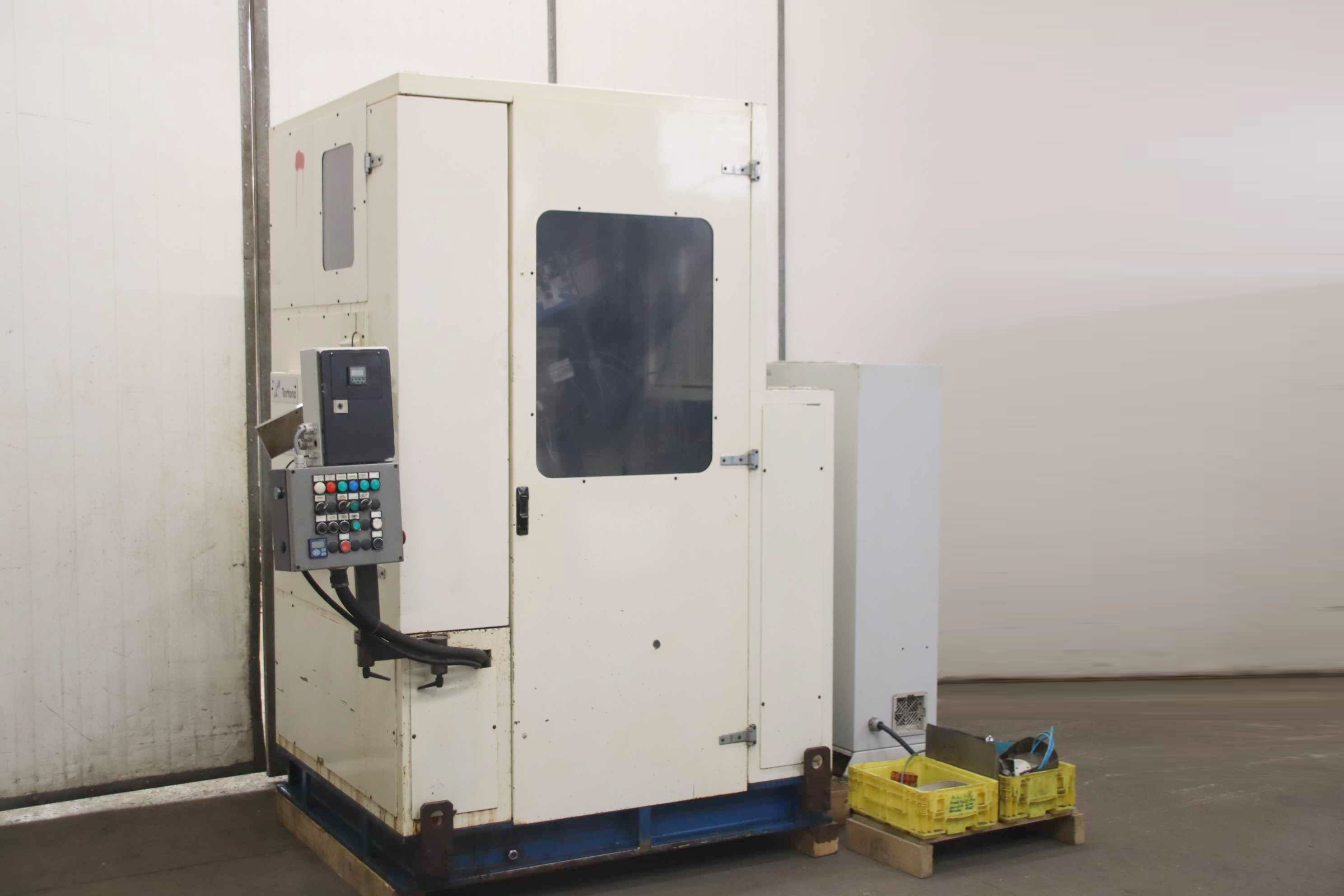 Thread rolling machine, segment thread rolling machine, cold forming machine, knurling machine -Manufacturer: Tortona beveling machines for producing tips and special pieces -Type: SM4 -Workpiece Ø: 8-16 mm -Workpiece length: 18-200 mm -Performance pcs/min: 180 -Machine dimensions: 1470/1700/H2210 mm -Machine weight: 1800 kg -Dimensions of control cabinet: 700/350/1400 mm -Weight of control cabinet: 130 kg