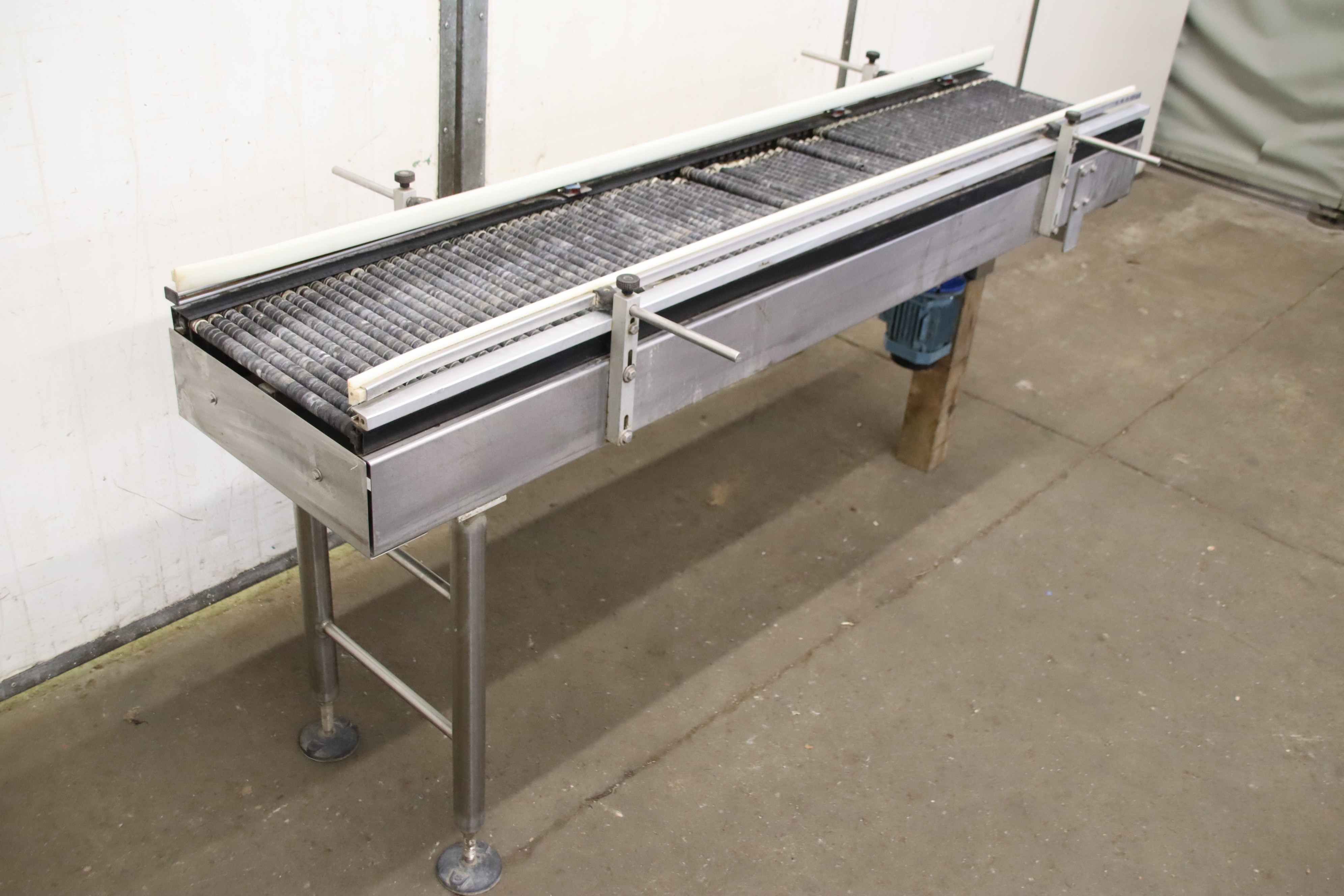 Conveyor belt, belt conveyor belt, conveyor belt, belt conveyor, steep conveyor, steep conveyor belt -Manufacturer: IMEC, conveyor belt conveyor belt housing VA with adjustable guide rails -Type: ST 340X2000 -Speed: Drive shaft 290 rpm -Conveyor belt rollers: Ø21 x 340 mm -Conveyor belt length: 2000 mm -Drive: ABB 0.37 kW -Total dimensions: 2010/500/H980 mm -Weight: 85 kg