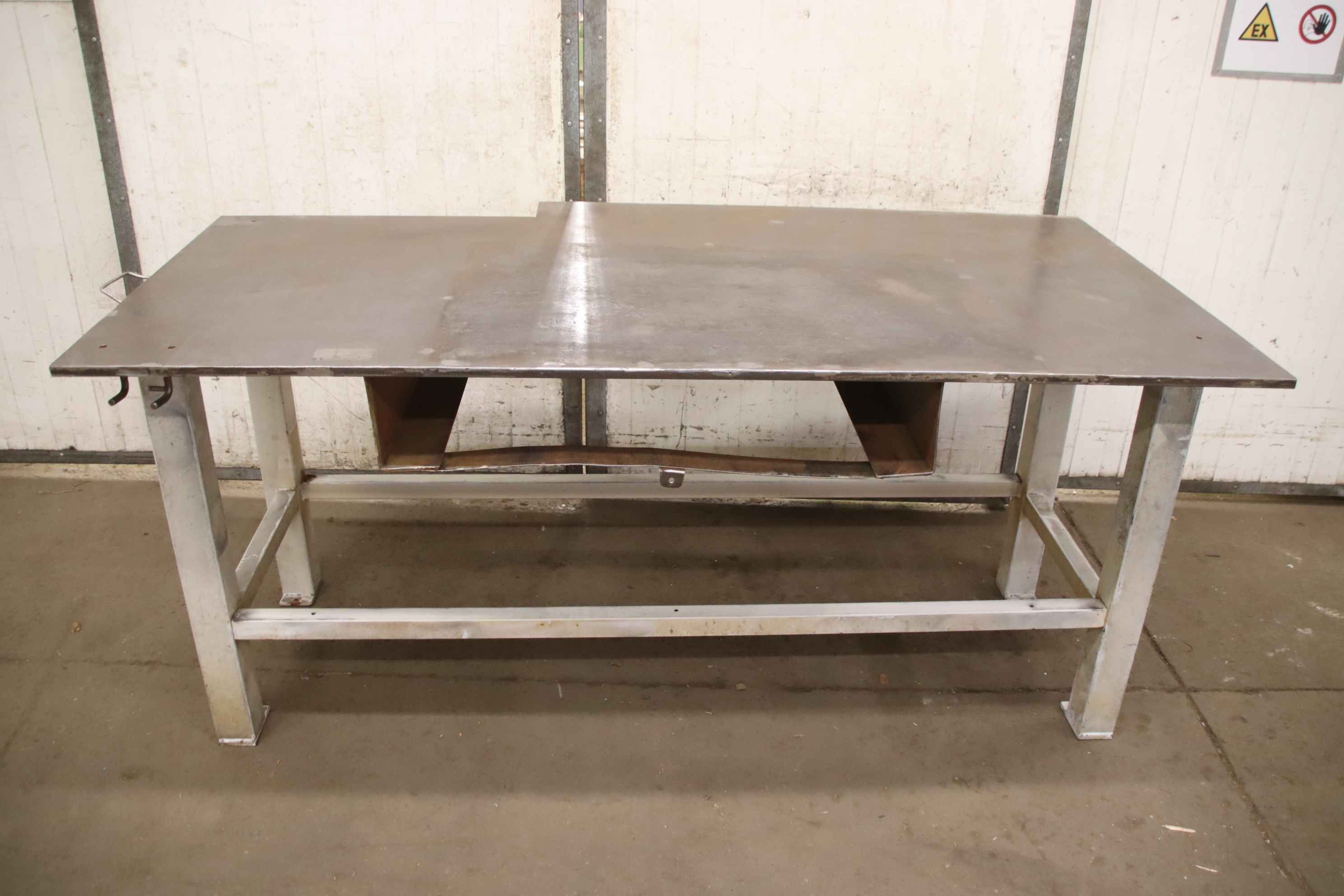 clamping plate, marking plate, measuring plate, measuring table, welding table, welding table, straightening plate, marking plate, straightening table-Clamping plate: on solid base frame-Clamping surface: 2000 x 1000 mm with cutout see photos-Table height: 920 mm-Plate thickness: 20 mm-Transport dimensions: 2000/1000/H920 mm-Weight: 347 kg