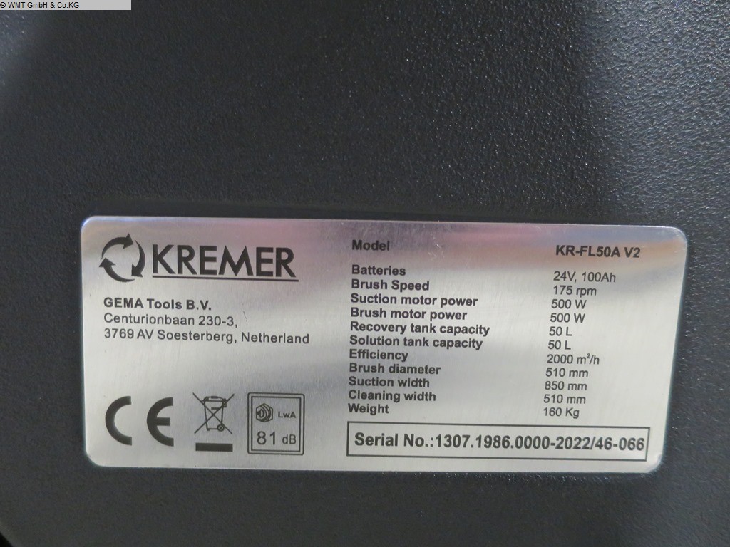 connected load frequency: 230 Vbattery: 24V / 100Ah Brush diameter: 510 mmturning speeds: 175 U/min0: Luft 24 L / stank capacity: 50 / 50 Literweight: 160 kgrange L-W-H: 1,1 x 0,52 x 1,0 mmKREMER floor cleaning machine:Packed with battery and chargerTheoretical surface cleaning:Output: 2000 m²/hSuction width: 850 mmCleaning width: 510 mmMax. working area incline: 2%Fresh/waste water tank volume: 50/ 50 LThe data for this ad was created with ModulMWS - the software solution of LogoTech oHG.