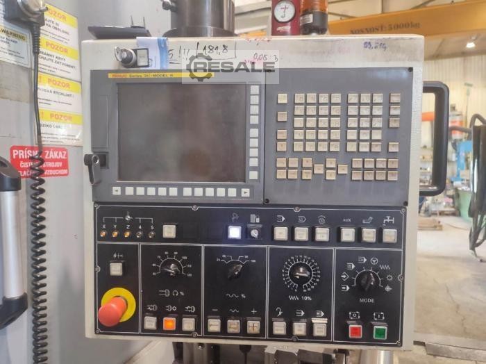 La máquina está en buen estado técnico, y tras un acuerdo previo es posible probarla. Fanuc 31iMB en versión estándar, incluyendo el siguiente equipamiento especial de la máquina: diálogo del sistema de control en checo Cambio automático de herramienta – 24 piezas de recorrido por eje Z – 1500 mm con soporte elevado Cinta de astillas Prueba de pieza OMP-60 Sonda de herramienta TS-27R Potencia del husillo 22/26 KW Velocidad horizontal del husillo 5000 rpm. Cabeza giratoria manual, velocidad 3500 rpm. El cargador de la herramienta de refrigeración central del husillo puede inclinarse fuera del espacio de la mesa, junto al soporte a la izquierda