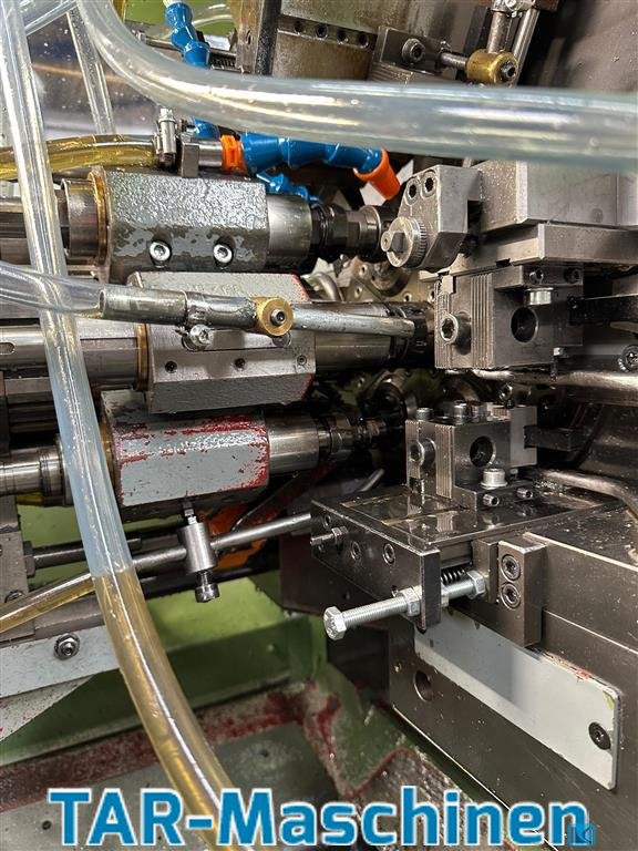 number of spindles:6 spindle passage:20 mm Article: cam-controlled multi-spindle automatic lathe Manufacturer: Gildemeister Type: GS20-6 Yob: 1989 six-spindle automatic lathe 8 main spindles for bars up to D=20mm All cross units are equipped with a tool holder (from Gildemeister or IMG Attachments) All longitudinal units are equipped, either fixed or rotating (without collets) An independent feed is installed at position 1 A gear set for one speed is installed A gear set for one cycle time is installed The scope of delivery regarding the tooling equipment could be different like pictures. Please, contact us for getting more information and pictures on mail(at)tar-mc.com or www.tar-mc.com