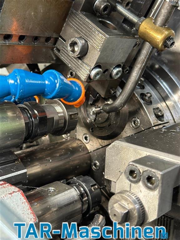 number of spindles:6 spindle passage:20 mm Article: cam-controlled multi-spindle automatic lathe Manufacturer: Gildemeister Type: GS20-6 Yob: 1989 six-spindle automatic lathe 8 main spindles for bars up to D=20mm All cross units are equipped with a tool holder (from Gildemeister or IMG Attachments) All longitudinal units are equipped, either fixed or rotating (without collets) An independent feed is installed at position 1 A gear set for one speed is installed A gear set for one cycle time is installed The scope of delivery regarding the tooling equipment could be different like pictures. Please, contact us for getting more information and pictures on mail(at)tar-mc.com or www.tar-mc.com