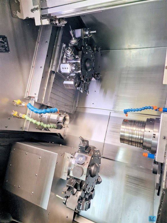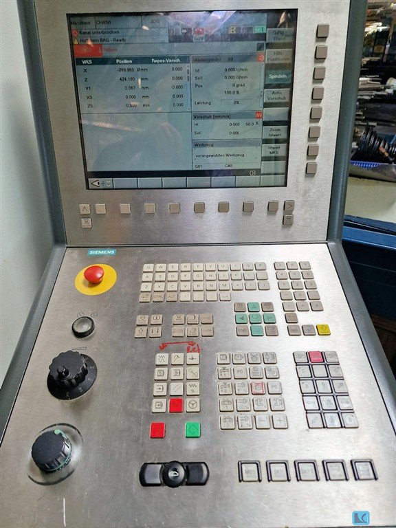 CNC Lathe Manufacturer: Gildemeister Type twin 42 Year of manufacture 2005 Control Siemens 840D Turning length 210mm 2 X 12-fold turret all places are powered Engine A 83700 Spindle A 50809 Machine has a defect in the pick-up spindle, probably bearing With Breuning Profimat bar loading magazine