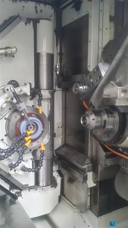 max. wheel diameter: 130 mm gear width: 25 mm max. module: 4 min. module: 0,5 Control: Siemens 840 D strokes - infinitely variable: 500-2500 Hub/min stroke: 30 mm work-spindle diameter: 85 mm total power requirement: 49 kW weight of the machine ca.: 11,5 t dimensions of the machine ca.: 6,4x4,5x4,4 m Counterhold without center hydraulically operated counter arm and Linear guides. For automatic ring loader, with 4 stations The data for this ad was created with ModulMWS - the software solution of LogoTech oHG.