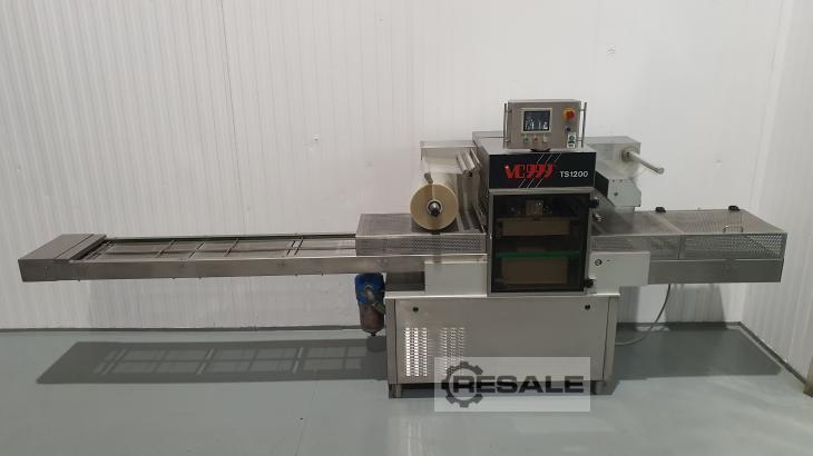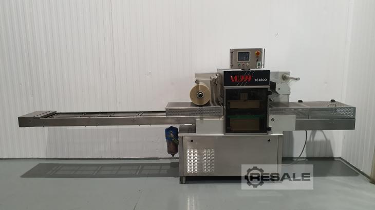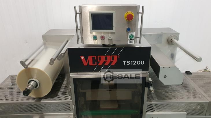 Máquina automática de selagem de bandejas, para recipientes pré-formados. Equipamento usado semi-novo. Do fabricante INAVEN MASCHINEN AG (VC999), modelo TS1200 N. Especialmente concebido para embalagens em formato de selagem térmica com vácuo e com atmosfera modificada, para obter maior conservação, melhor apresentação, bem como facilidade de armazenamento e transporte. Executa automaticamente o ciclo MAP, selagem térmica e injeção de gás, corte perfeito de filme e coleta automática de filme. Tem 2 durações de vedação em diferentes formatos. Dura para selar 2 recipientes ao mesmo tempo. • Dimensões externas 4400 mm de comprimento x 870 mm de largura x 1790 mm de altura, fita de entrada de 2700 mm de comprimento, fita de saída de 1120 mm de comprimento. • Potência 6 kW; • Fonte de alimentação 400 V, 50 Hz; • Medidas de contentores por moldes: 1º M ...