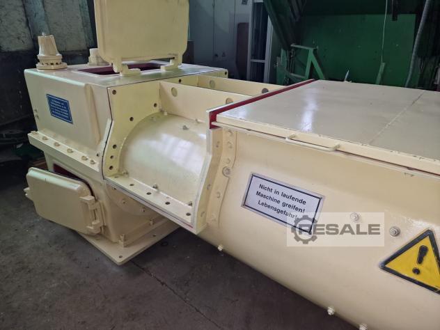 A Händle twin-shaft screen filter mixer with hydraulically adjustable screen, which was overhauled in 2020, is available. Gearbox: ZHP 5.32/1168848, oil type: CLP PAO 320, gearbox weight: approx. 1000kg, mixing trough width: 1000mm, trough and cylinder length: 1150mm+850mm, mixer shaft speed: 12U-30rpm, theoretical wet material throughput capacity: approx. 39t-99t, theoretical compact material volume throughput: 22m³-56m³/h. The gearbox, mixer shafts and screening device were overhauled in 2020. Including mixer screws and screens. Documentation available. On-site inspection is possible.