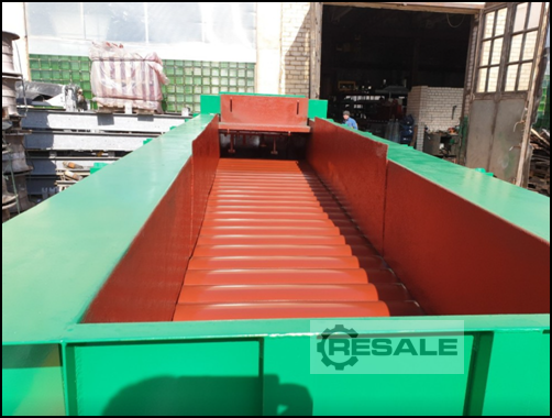 Box feeder with steel scale strap and combined drive for belt and reel over pre-bed. Box dimensions: Approx. 2,000 mm x 750 mm x 500 mm high; incl. hopper (on box) with the following inlet dimensions: 1,600 mm x 1,200 mm x 360 mm high. Condition: Good substance; Motor must be overhauled, tape partially made viable.