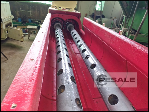 Extrusion press with 400 mm , drive 55 kW, hard casting screw wings and pre-press PZSVG 40 (Built 1996, drive 15 kW), on 4 hydraulic spindles. Complete with 1 spare part set screw and reel.