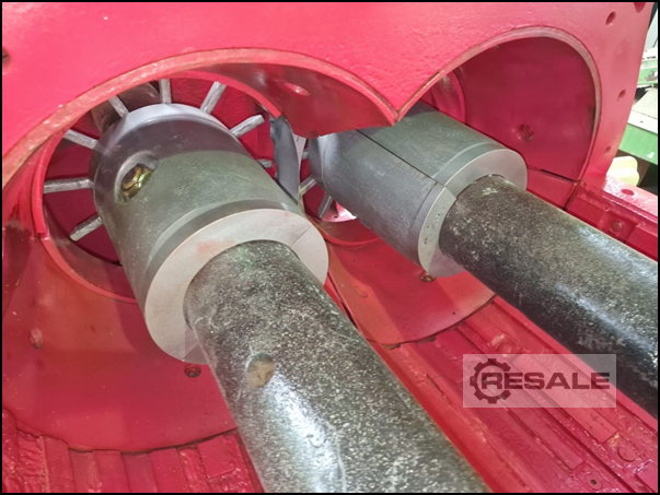 Robust smoothing mill with a roll diameter of 1000 mm and a roll width of 800 mm, including drives and auxiliary drives. Current residual sheath thicknesses: 80 mm / 85 mm. Optionally available: 1 set of new roller shells.